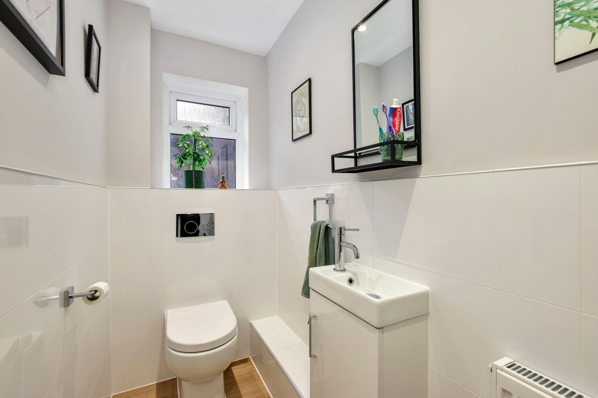 A stand out feature of the home is the tastefully refitted kitchen-breakfast room, which boasts contemporary finishes with contrasting shaker style units and high-quality appliances and plenty of storage/worktop space. The large living room which flows out to the garden offers a welcoming space to relax, while an additional separate reception room provides flexibility - whether you need a formal dining area, a family room, or a home office. The ground floor also benefits from a stylish guest W/C, adding further convenience. To the first floor there are 4 comfortable bedrooms, each benefitting from fitted wardrobes, providing ample storage and a sleek, cohesive look throughout the upstairs. Additionally, there is a contemporary refitted family bathroom.