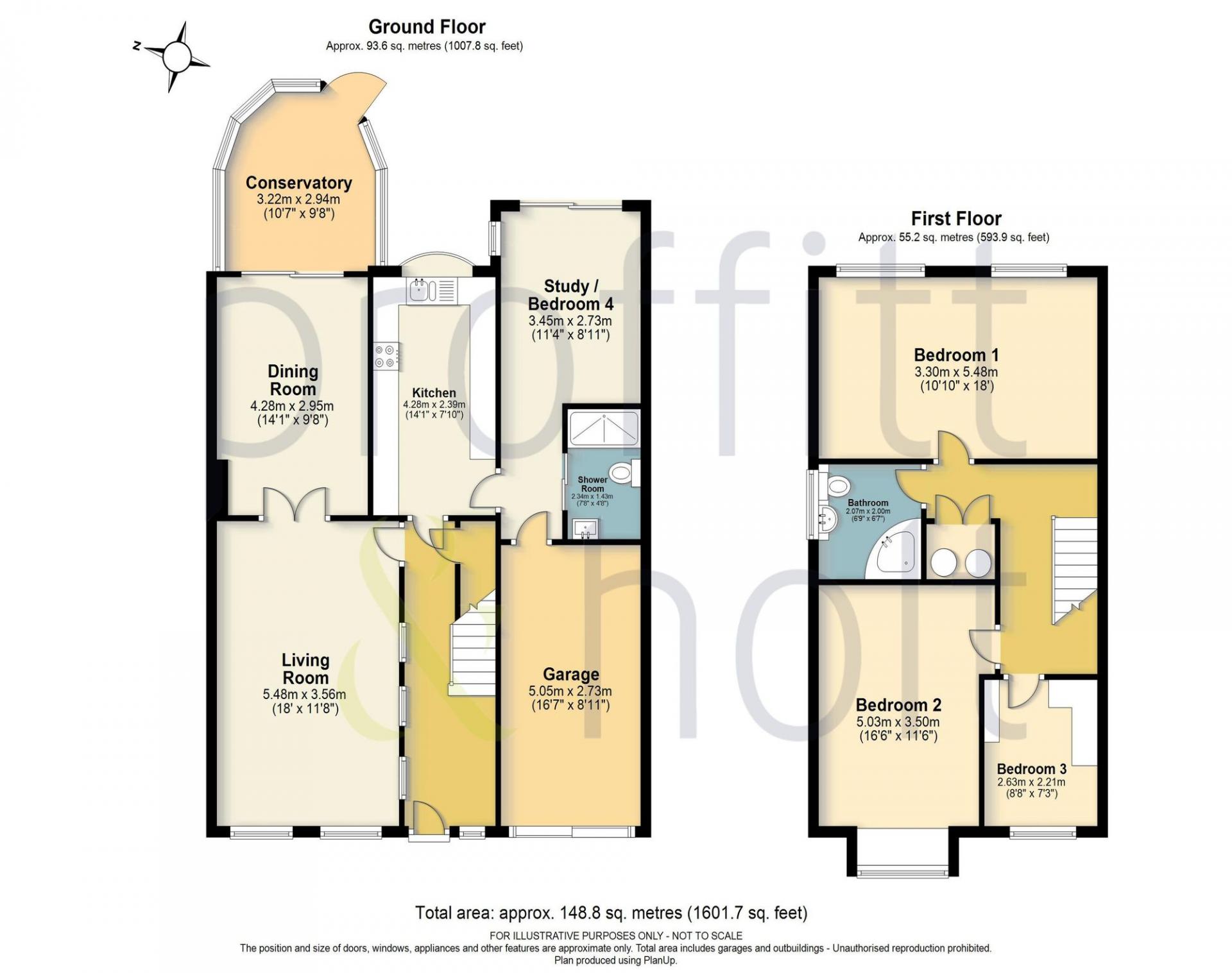 Internally the accommodation comprises entrance hall, living room, dining room, kitchen, conservatory, study/bedroom four and downstairs shower room to the ground floor.