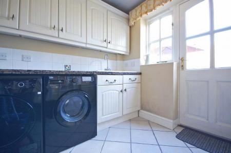 Double glazed window to rear aspect, a series of matching base and wall units, granite work surfaces incorporating ceramic single bowl sink with central mixer tap and drainer, space for washing machine and tumble dryer, tiled flooring and textured coved ceiling. Door to rear garden.