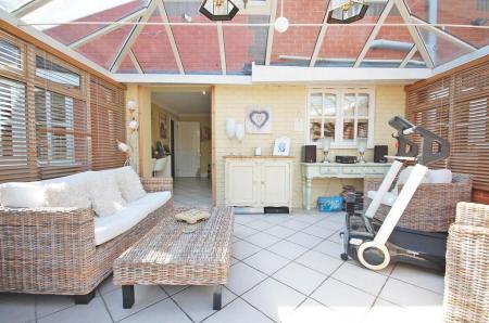 Part-brick and part-UPVC construction with vaulted glass roof, radiator, tiled flooring and french doors onto rear garden.