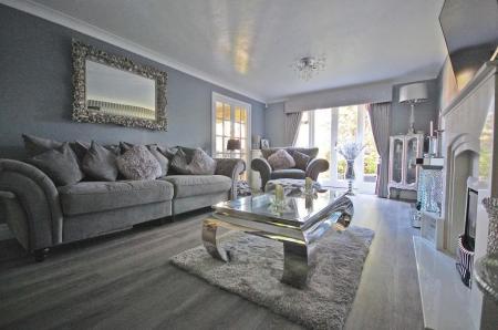 Double glazed window to front aspect, feature gas fireplace with surround, radiator, french doors to adjacent dining room, wooden flooring and textured coved ceiling. French doors to rear garden.