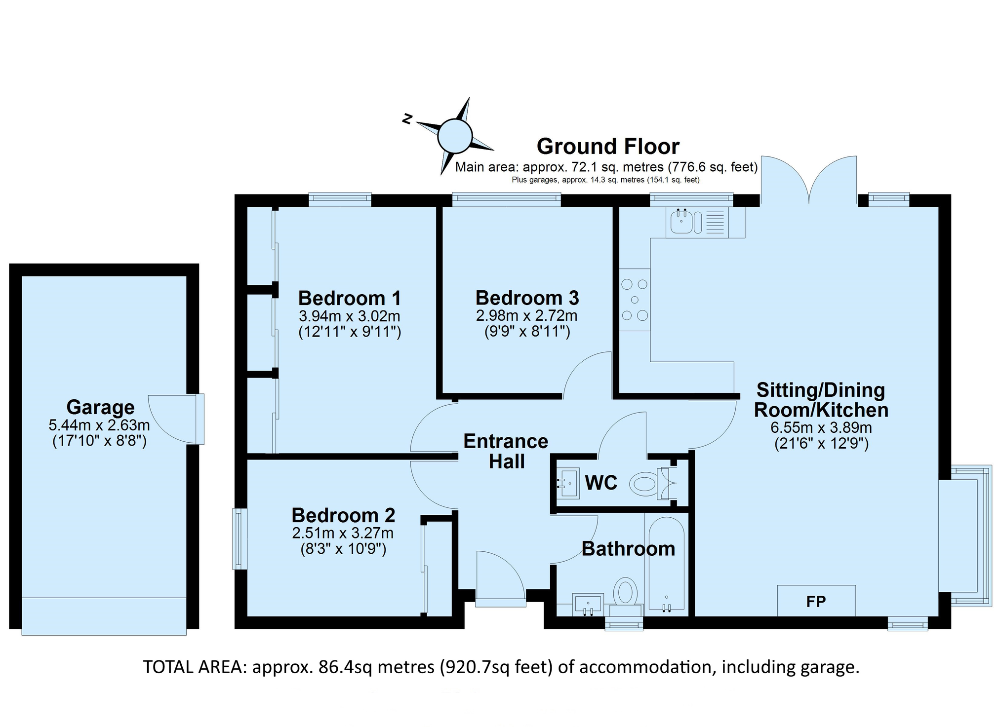 - Approximately 86.4 sq. metres (920.7 sq. feet) of accommodation including garage