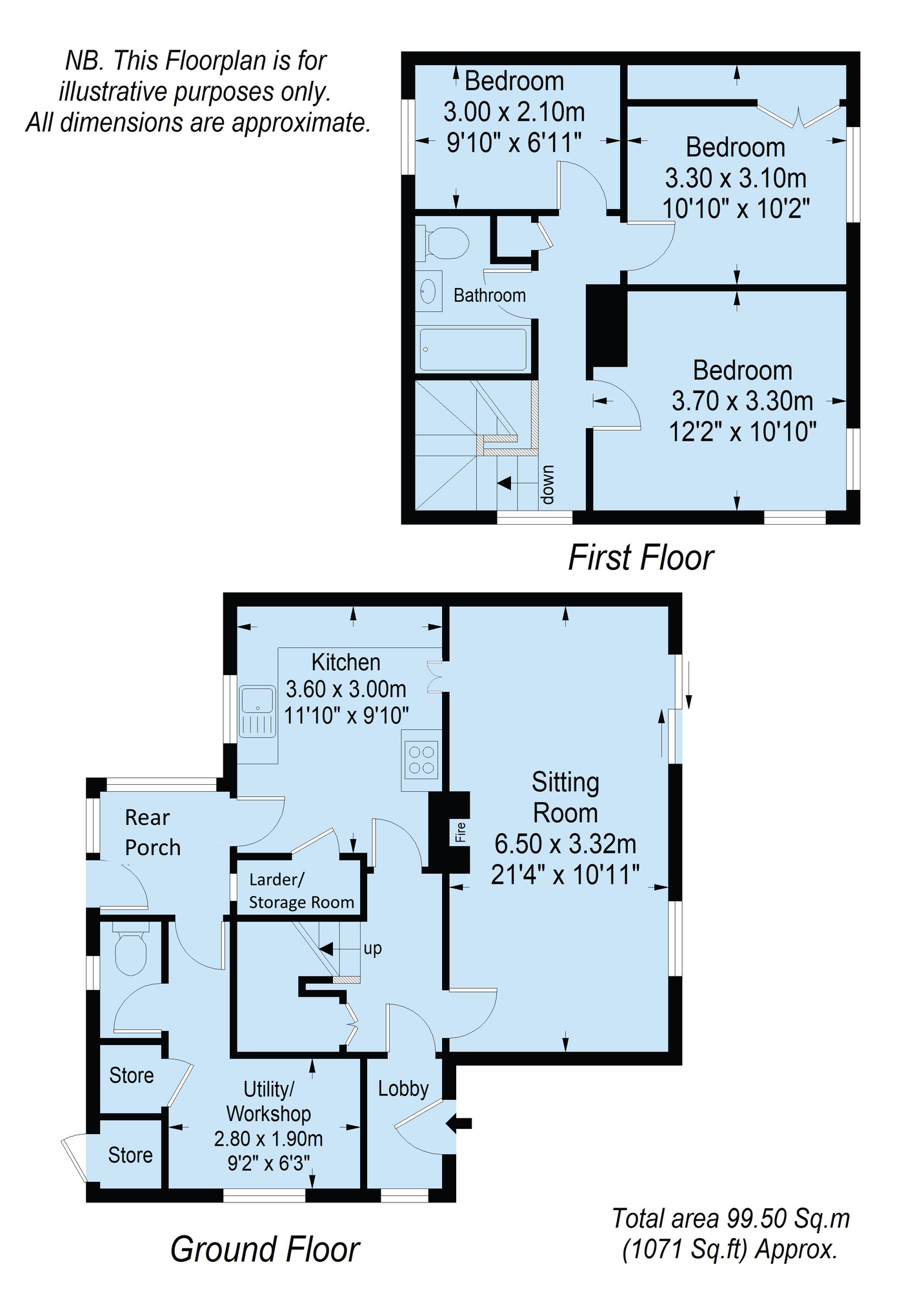 Upstairs there are three bedrooms, a bathroom and a storage cupboard on the landing.