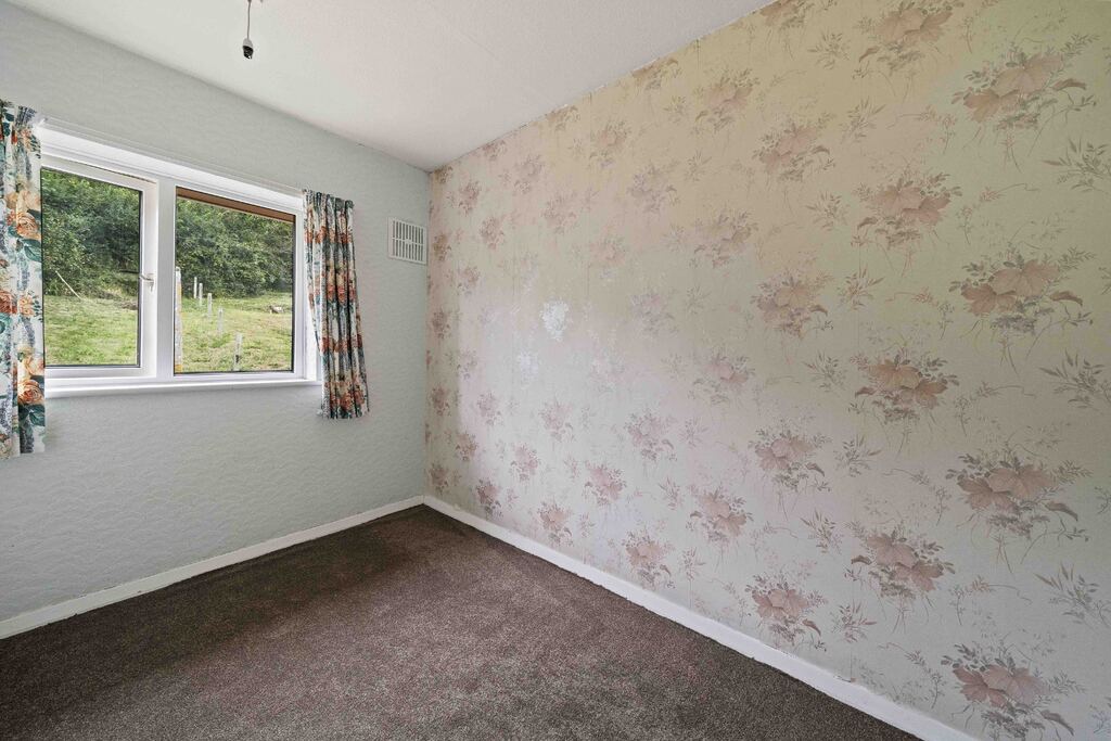 The sloping gardens which are mainly laid to lawn are bound by hedging with some established shrubs and bushes. There is a level area off the sitting room, ideal for sitting and taking in the views. There is also a large garden store and a greenhouse.