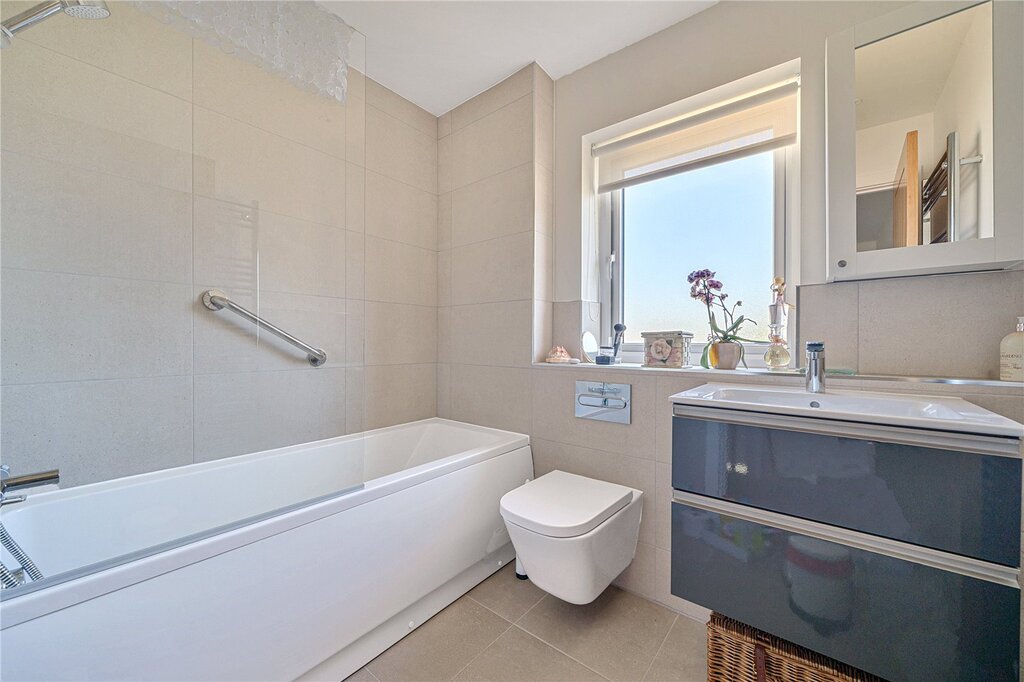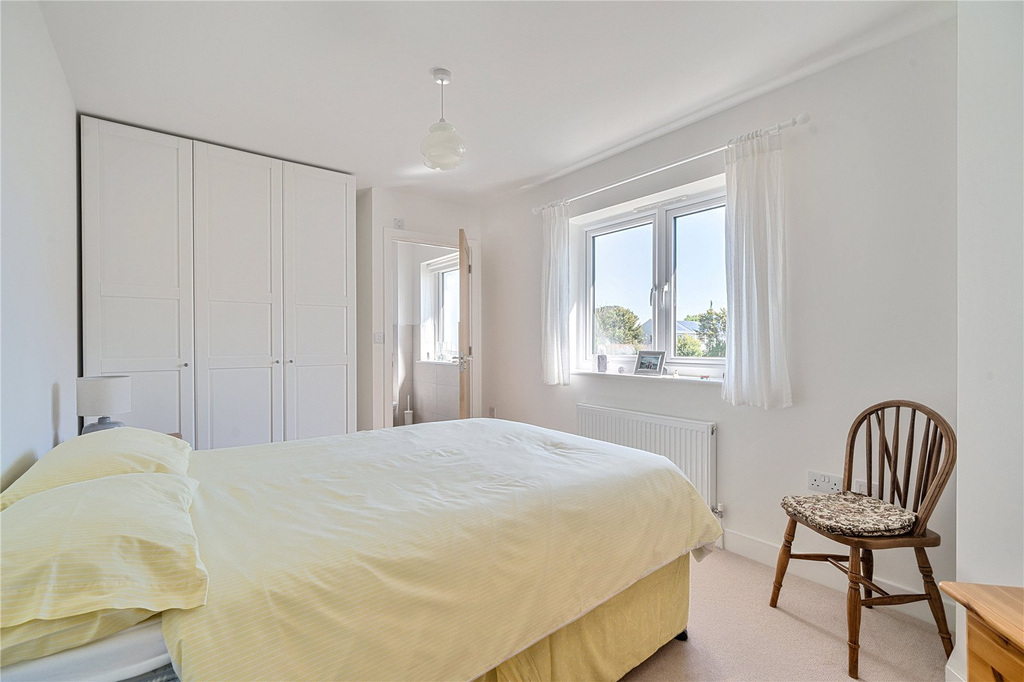 The first flooring landing connects the 3 bedrooms and family bathroom, with a useful store cupboard. Bedroom 1 has a rear aspect with fitted wardrobes and a stylish ensuite. Bedroom 2 has a front aspect with wonderful rural views and sea glimpses, fitted with an collection of wardrobes. Bedroom 3 is a single room with the same front aspect enjoying superb views across the neighbouring land. The modern family bathroom is arranged with a bath, wc and basin set within a vanity unit.