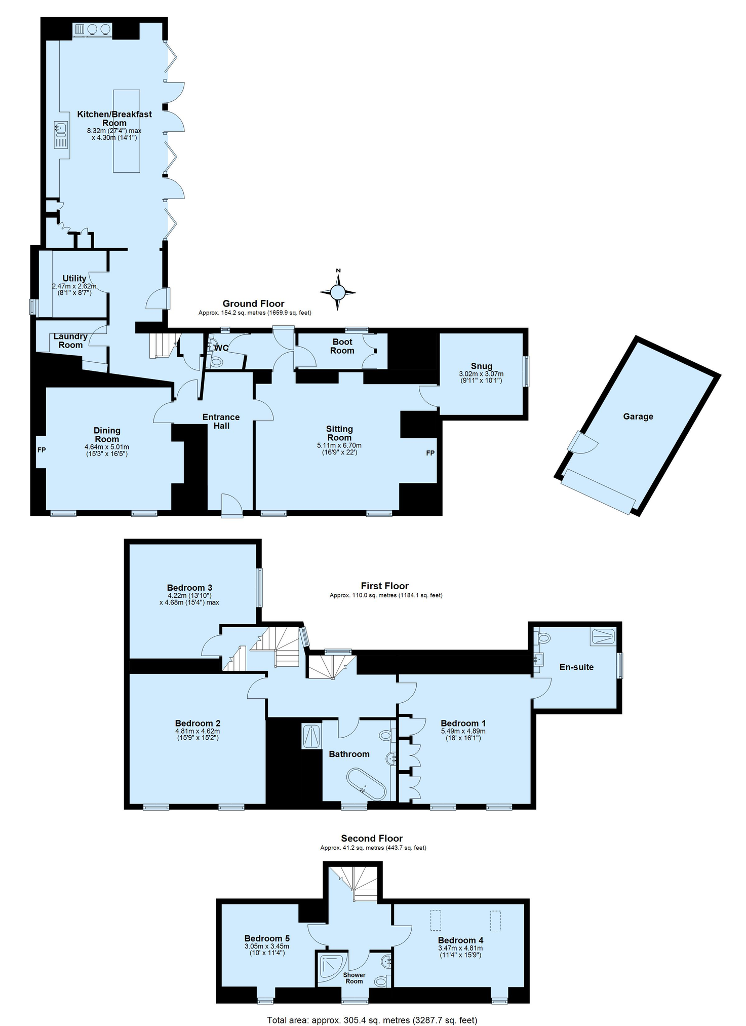 - 5 double bedrooms, 1 en-suite, a family bathroom, shower room and cloakroom