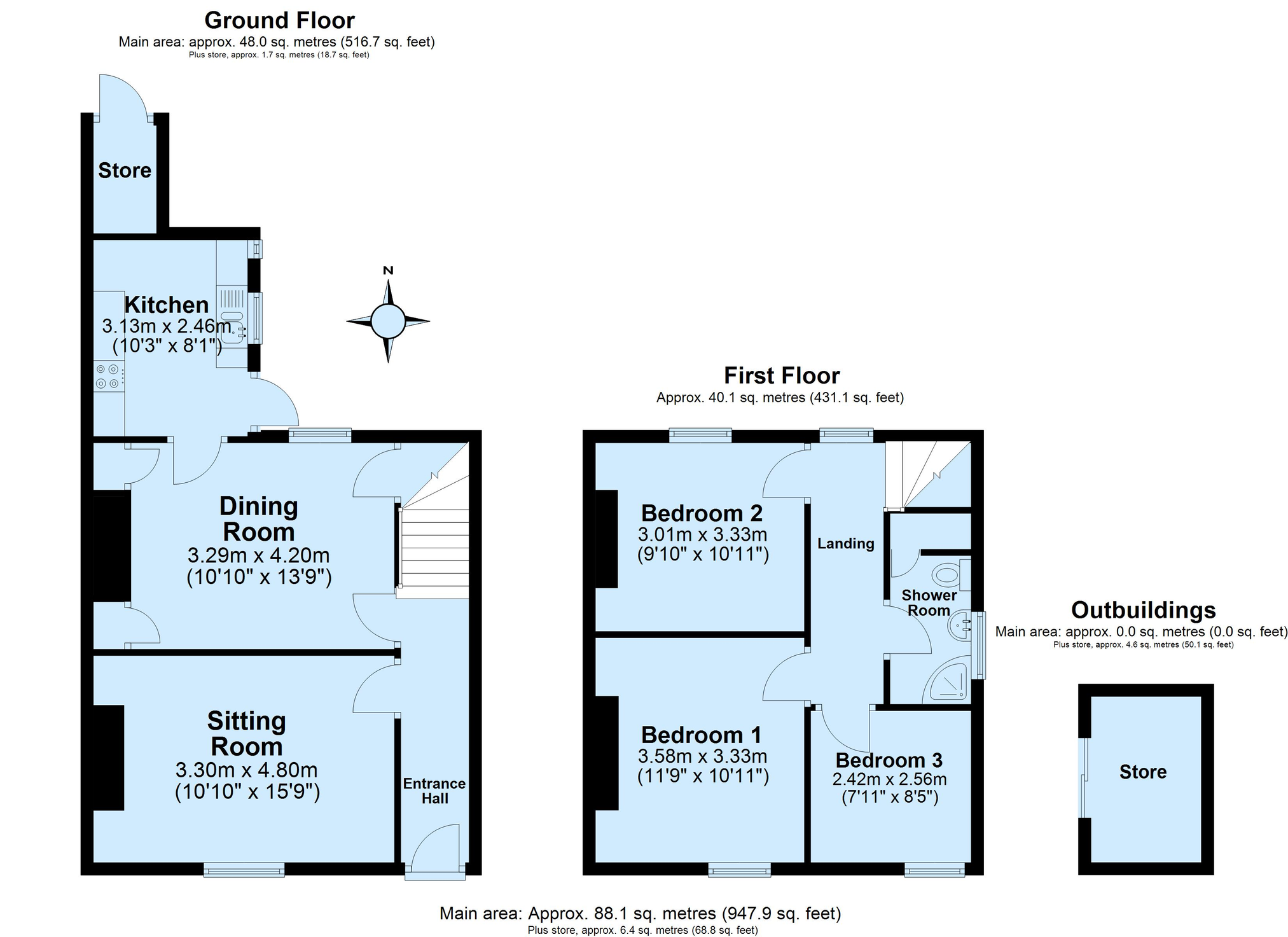 The property is in need of some modernisation but has good size, bright and spacious rooms covering approximately 947.9 sq.feet comprising entrance hall with stairs to the first floor. Sitting room to the front, dining room with store cupboard, kitchen with fitted base and wall units, some integrated appliances and access door out to the rear patio and garden.