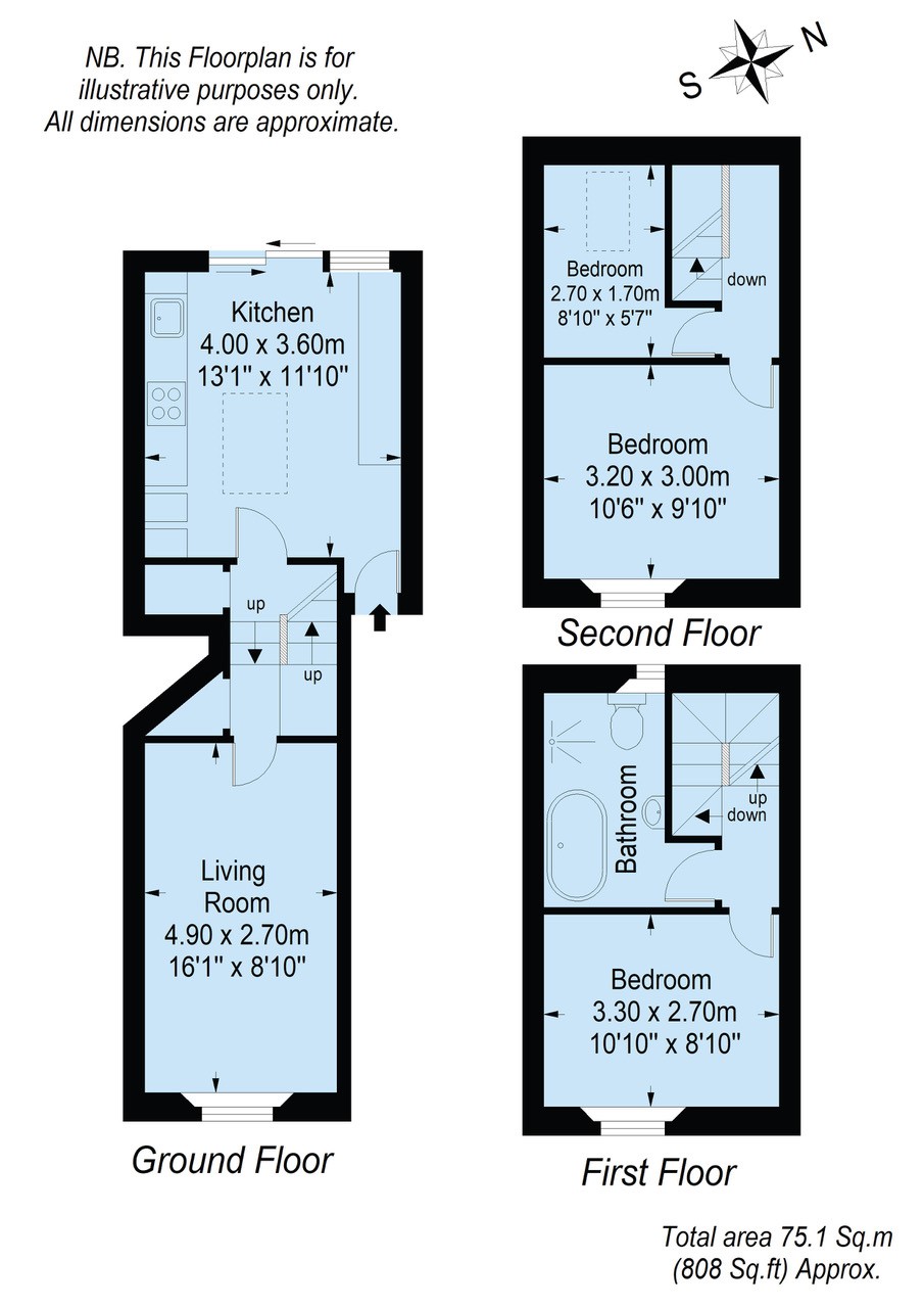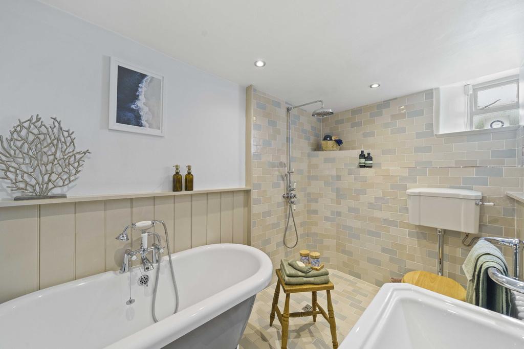 The first-floor houses one of the two double bedrooms and a well-appointed, stylish bathroom with bath and separate shower. On the second floor is a further double and one single bedroom.