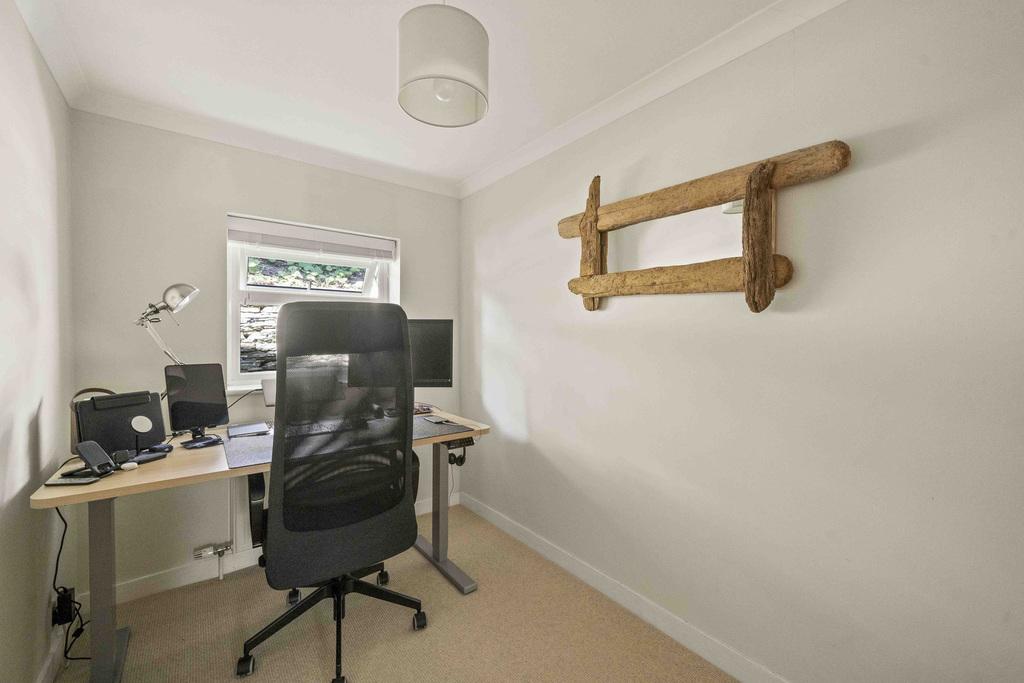 comprises open porch, hallway with built-in storage, large sitting room with wood burner,