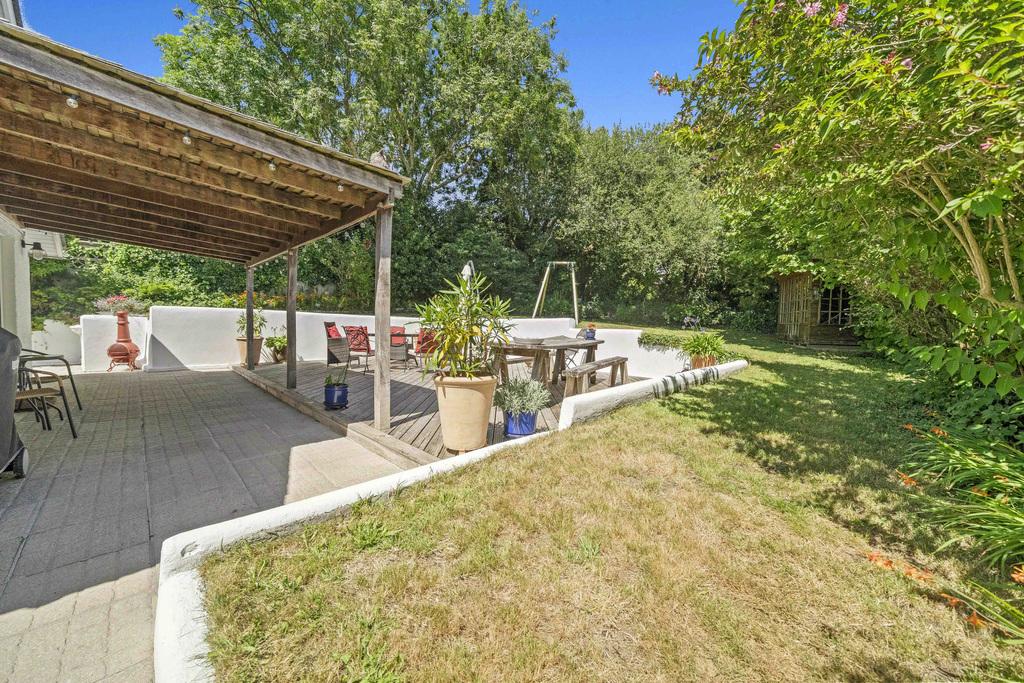 The property is bound on all sides by decorative stone walling, painted walls and timber