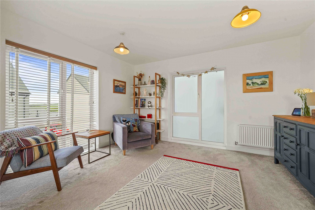 On the ground floor is a covered entrance porch leading up to the front door. Inside is a spacious entrance hall with stairs up to the first-floor landing which houses a cloakroom and store cupboard. This floor is the heart of the house having a spacious triple aspect reception room allowing natural light to flood in, and a well-equipped open plan kitchen/dining room with modern units, integrated appliances, breakfast bar and plenty of room for a dining table and chairs in front of the French doors that open out to the patio.