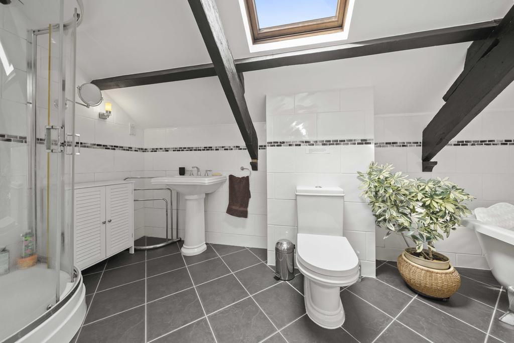 The principal bedroom suite is on the first floor, this is a super room with dual aspect windows, skylights and a superb en-suite bath and shower room.