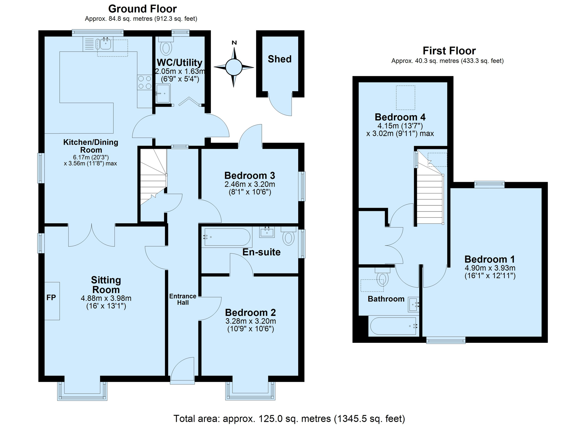- Established front and rear gardens, 2 patio seating areas, garden shed