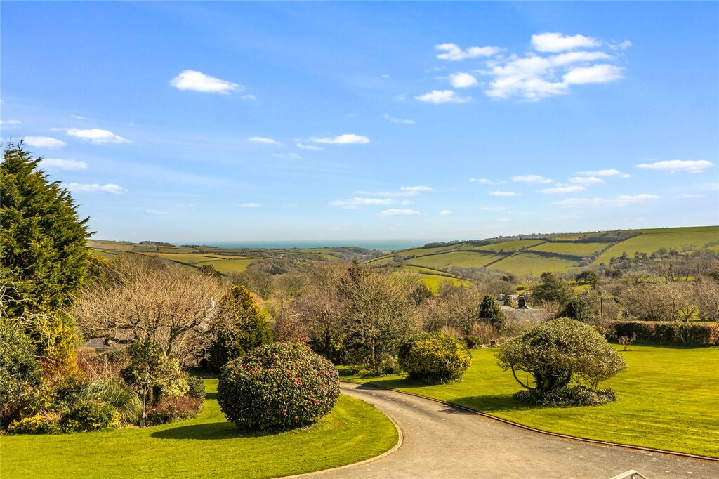 From the quiet and peaceful hamlet of Harleston you approach Coombe Waters up a private drive, where there is ample parking and turning space. A number of steps lead up to the large front terrace, from where you can enjoy the wonderful southwest views over the gardens, land, valley and sea beyond. Through the front door and into a large entrance hall with limestone flooring. From here you can enter the superb sitting room with inset log burner and large patio doors that lead out to the front terrace. Through to the dining room, which has a lovely feature of a panelled barrel ceiling adding to the character of the room. Through to the magnificent Neptune kitchen/breakfast room, which is fitted with engineered oak flooring, ample work surfaces, central island, cupboards and integrated appliances. Large windows offer lovely south westerly views and a spacious walk-in pantry provides additional useful storage.