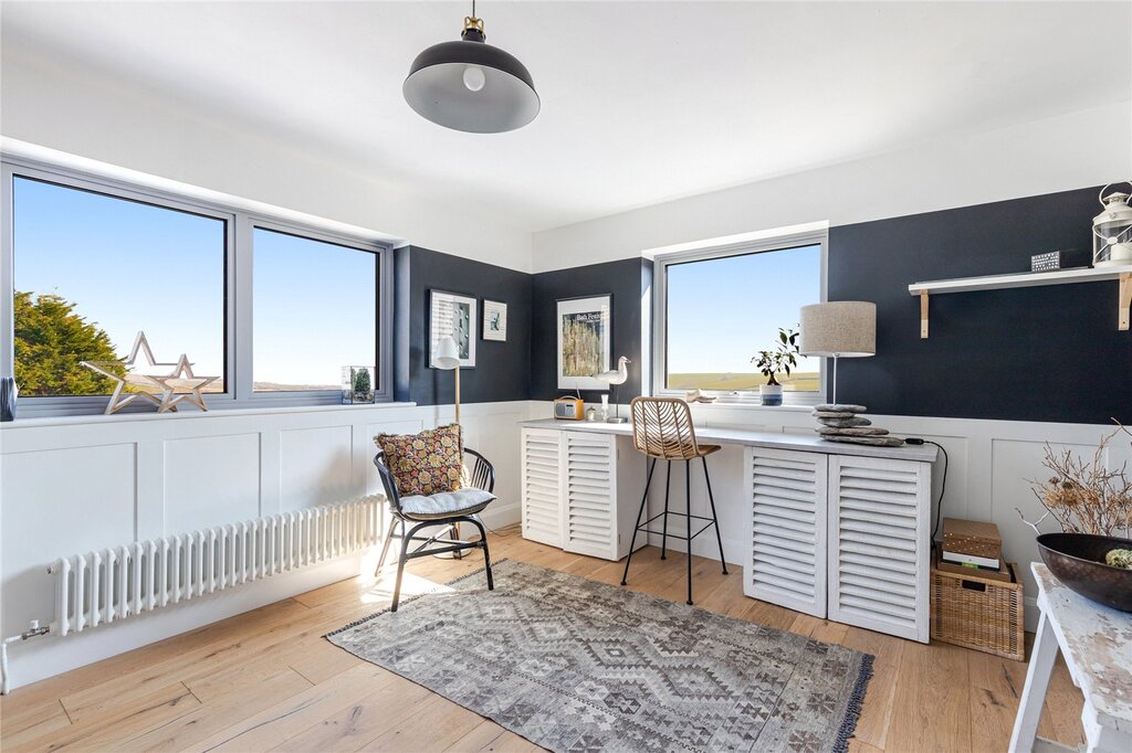 Back round to the entrance hall where there is a double bedroom with en-suite shower room, twin bedroom, further double bedroom/study and a useful large storage cupboard and pannelled cloakroom.