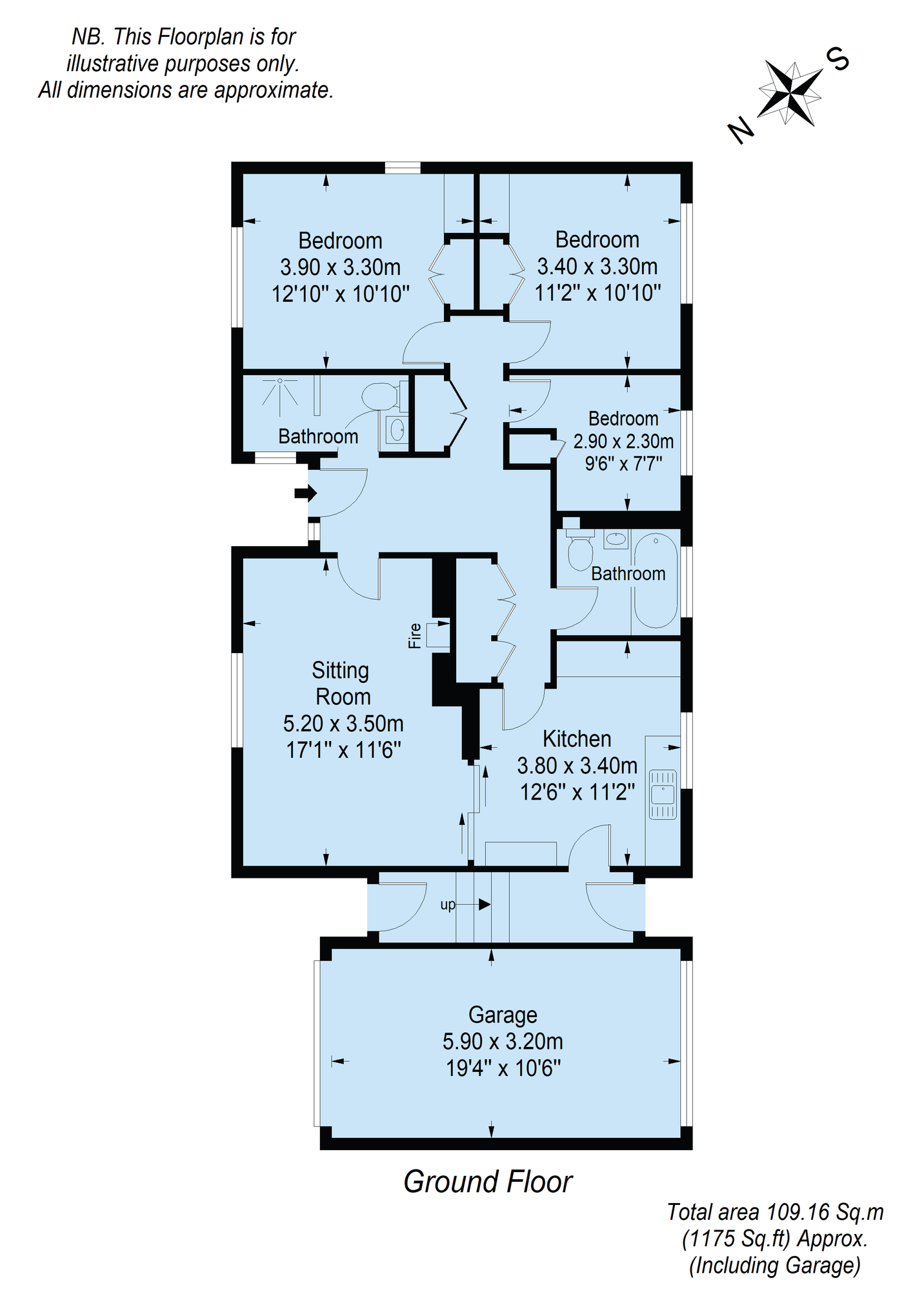 The property offers a spacious interior which is flooded with natural light comprising entrance hall with built-in storage cupboards, three bedrooms, two doubles and one single, a kitchen, sitting room with stone fireplace, fully tiled bathroom with electric shower above the bath and a separate shower room with electric towel rail.