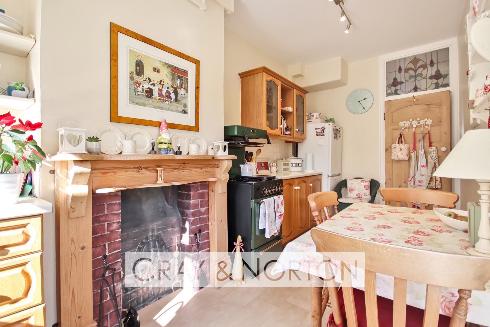 The home itself comprises a spacious entrance hall with ample room for coats, shoes and additional storage, as well as potential to create a downstairs WC. The front reception room features a beautiful bay window that floods the space with natural light, alongside a charming fireplace. To the rear, the dining room also benefits from a fireplace, built-in storage cupboards and French doors that open out onto a well-maintained garden with a patio area and shed - ideal for entertaining or relaxing. The kitchen is a practical and well-sized space, with direct access to the garden.