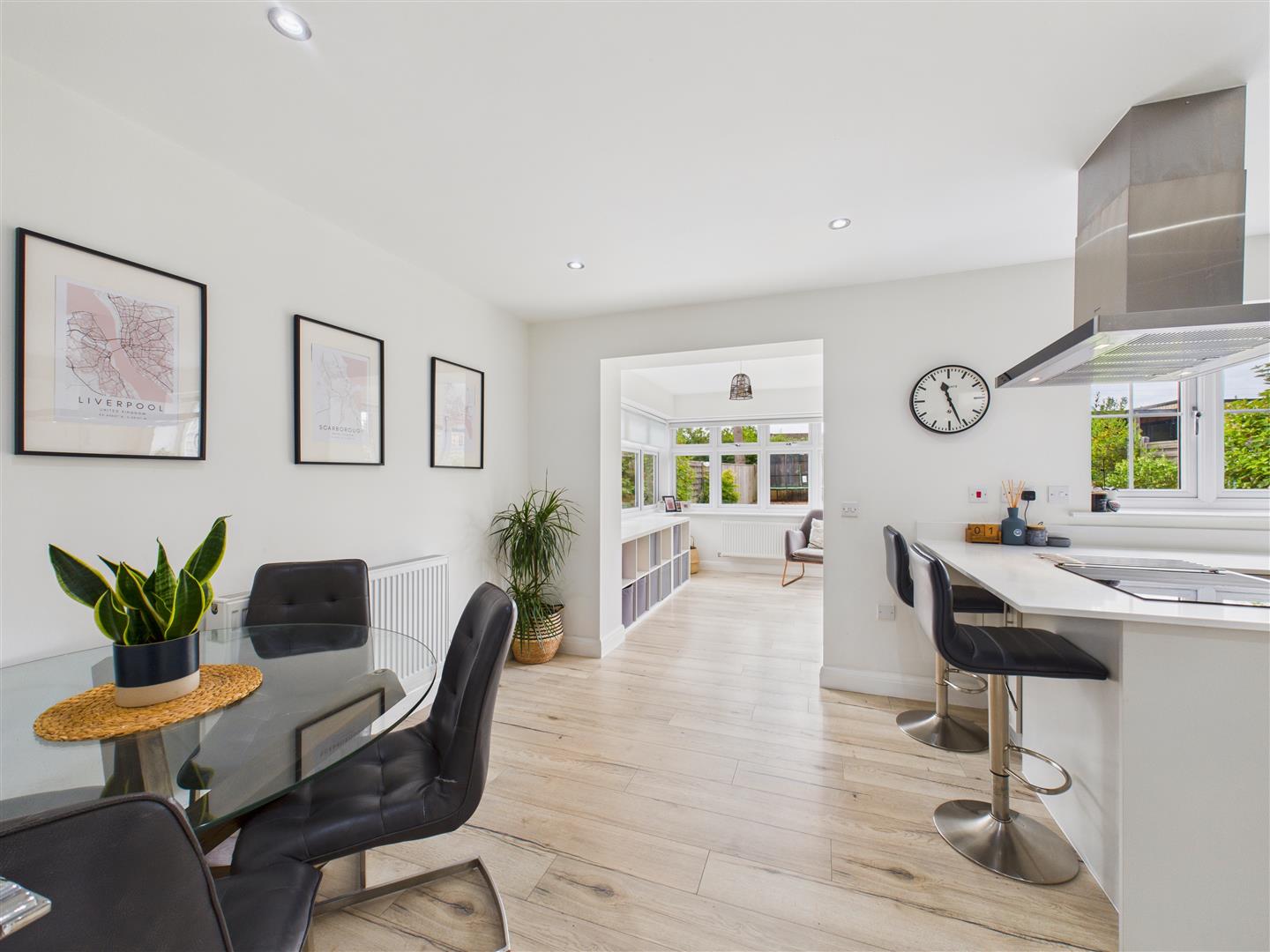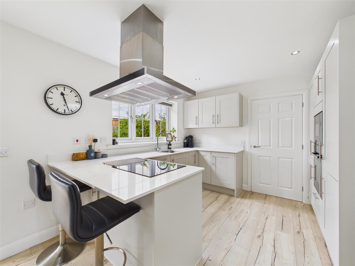 Dining Kitchen - Having a range of stylish units with quartz worktops incorporating a one and a half undermount sink plus an breakfast bar peninsular. Integrated appliances include an oven, microwave, induction hob with extractor above, fridge/freezer and dishwasher. Window to rear.