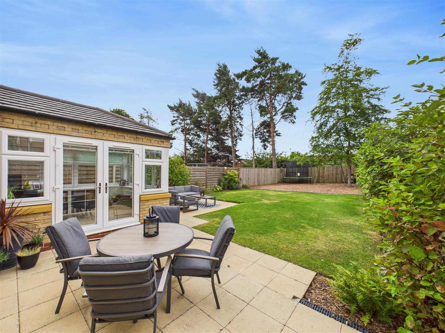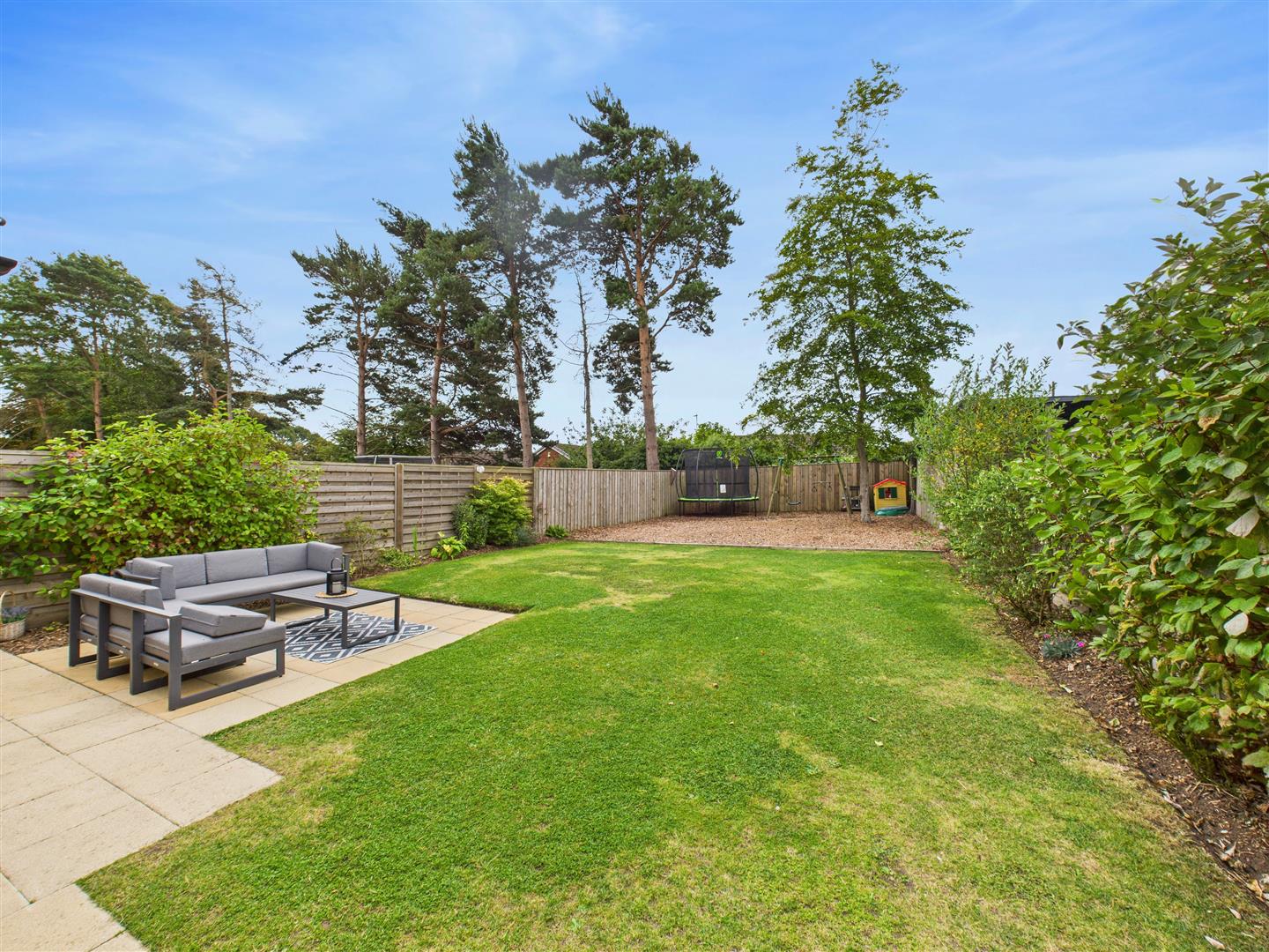 Outside - A neat lawned garden extends to the front, and a driveway provides off-street parking, leading to the integral garage. The rear garden is an exceptional outdoor space, enjoying a desirable southerly aspect with lawn and patio areas. There is also a further bark-chipped area to the rear of the garden, ideal for children's playing equipment or low maintenance planting.