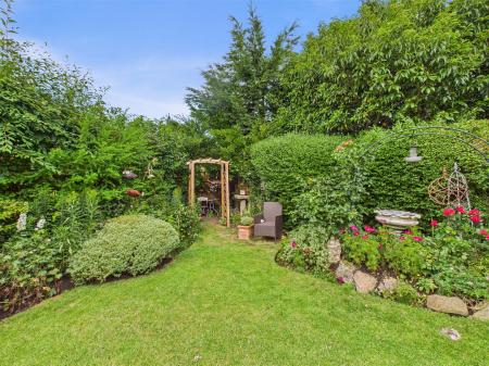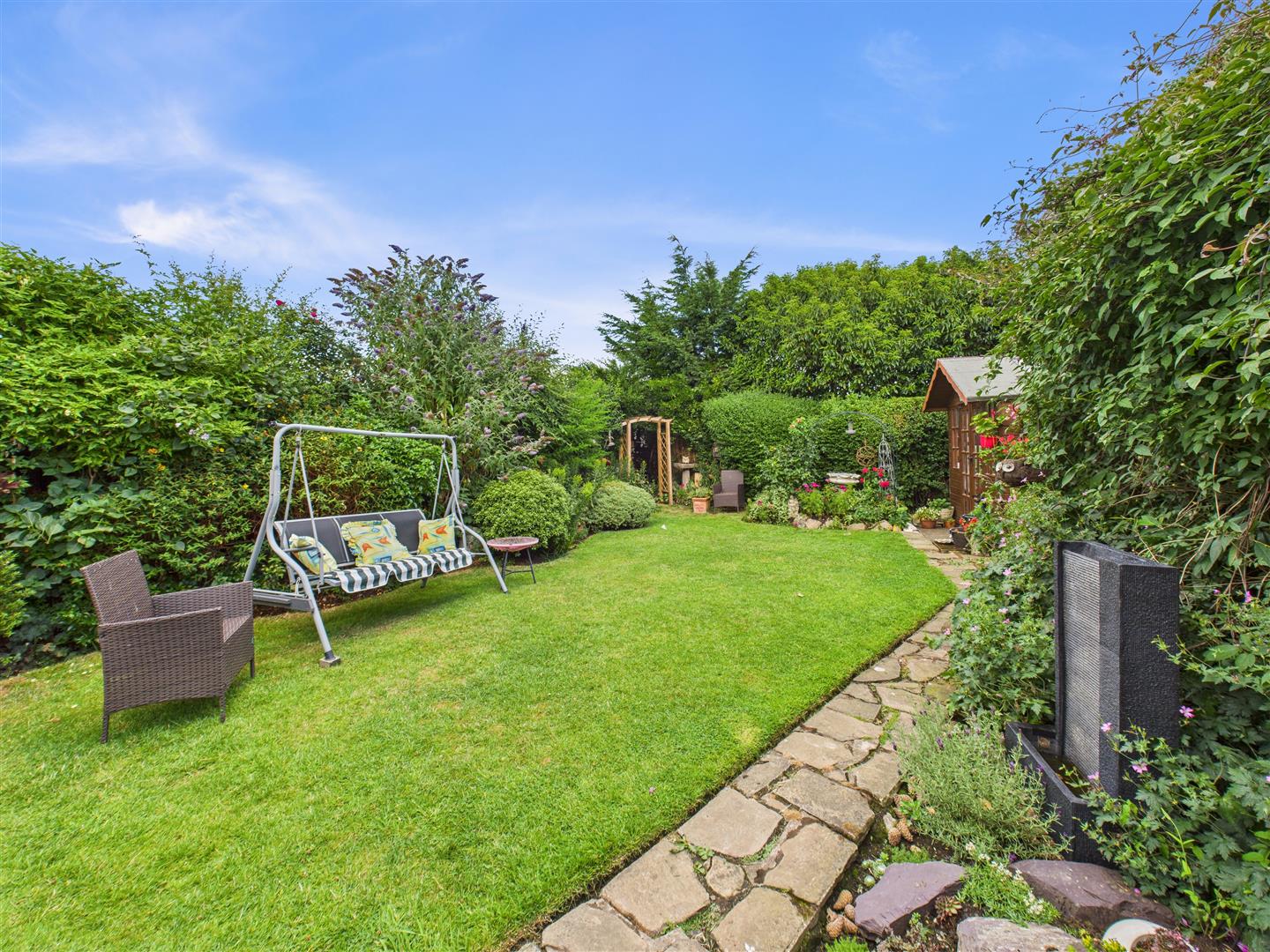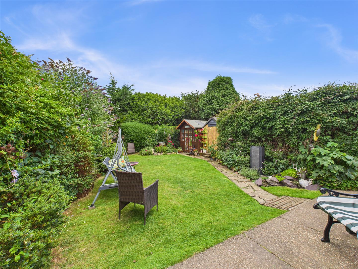 Outside - Outside, a block-paved driveway provides off-street parking, complemented by a neatly maintained lawn and attractive shrub borders to the front. A further side drive leads to a detached single garage. The rear garden is a standout feature-offering excellent privacy, a well-tended lawn, a patio seating area, a summerhouse, and a garden shed.