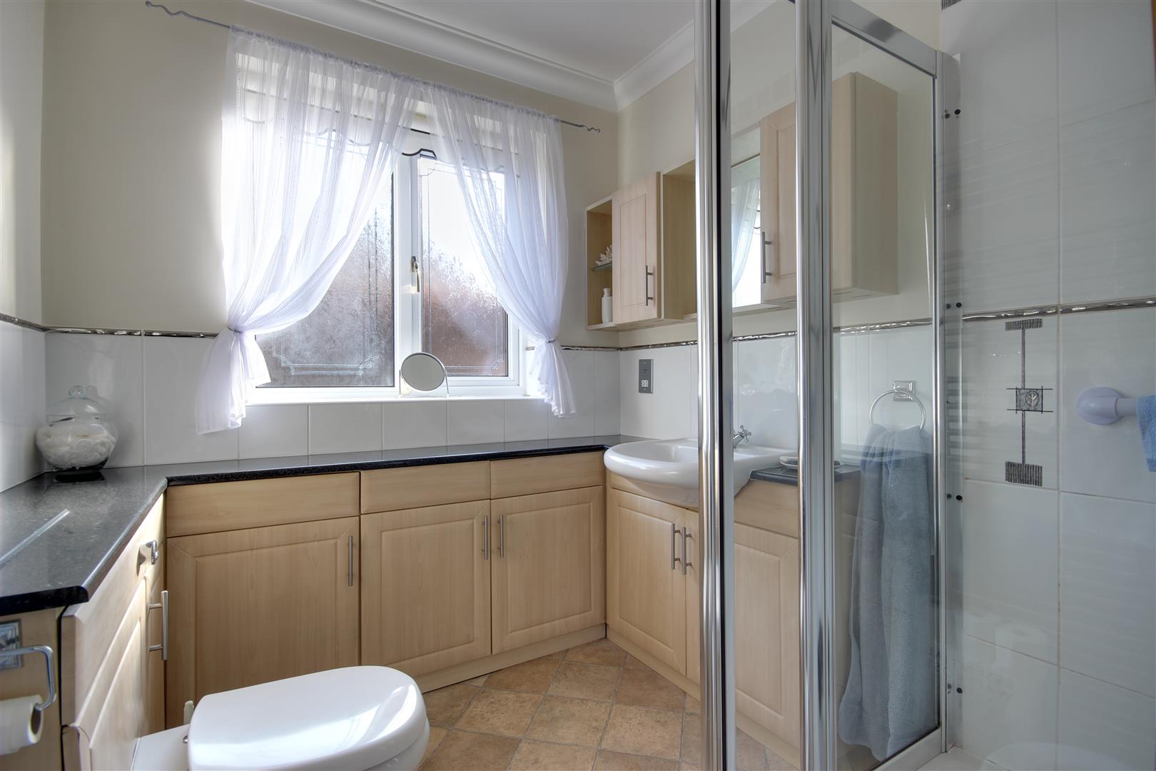 En-Suite Shower Room - With shower enclosure, fitted furniture with inset wash hand basin and concealed flush W.C., tiled surround, heated towel rail.