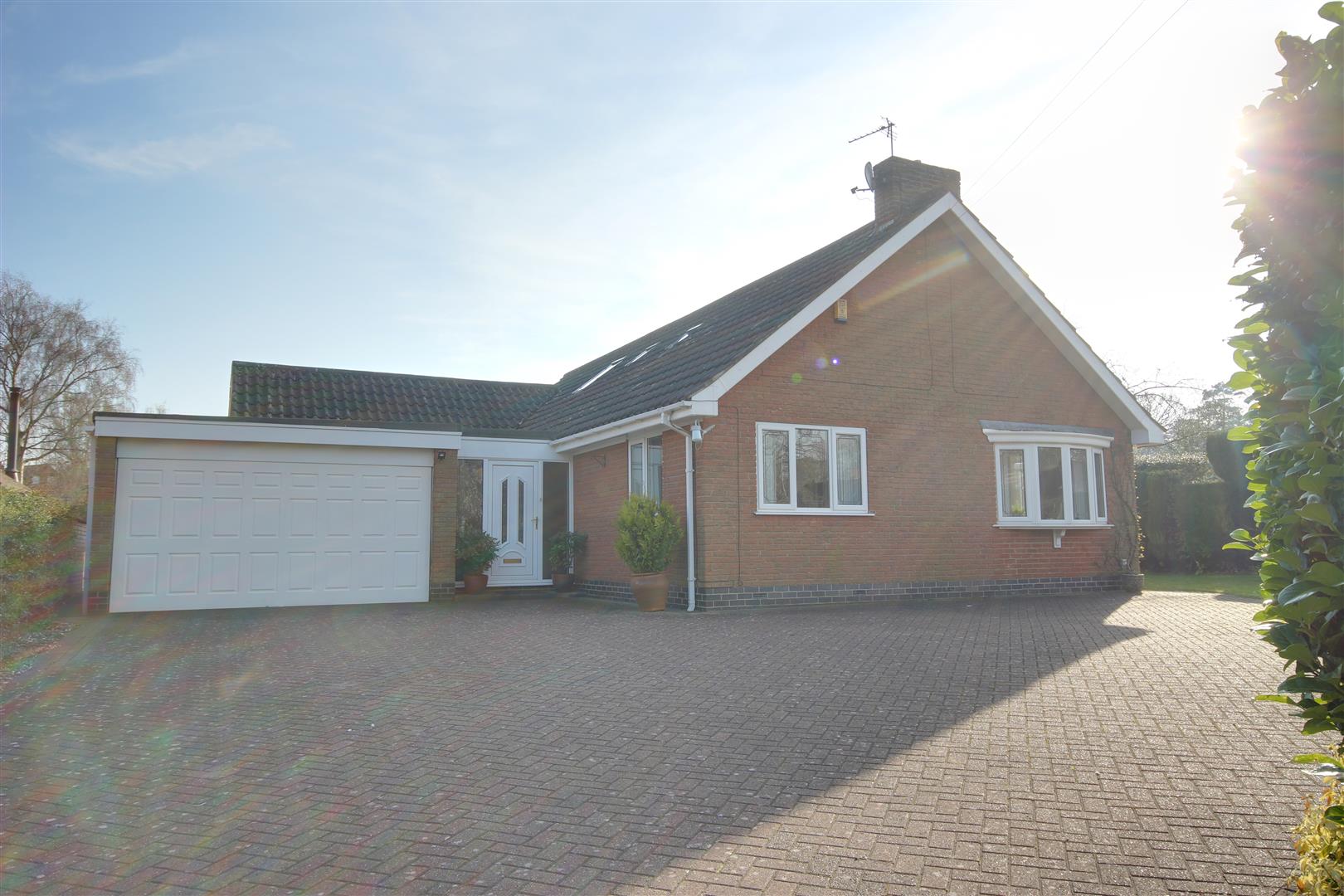 Outside - The property occupies a lovely corner style plot at the junction of Valley Drive with West Ella Road, opposite Godmans Lane. An automated gated entrance opens to an extensive block set driveway and forecourt which provides great parking and access to the double garage. Lawned gardens surround the property to the front side and rear being bounded by hedges and shrubbery.