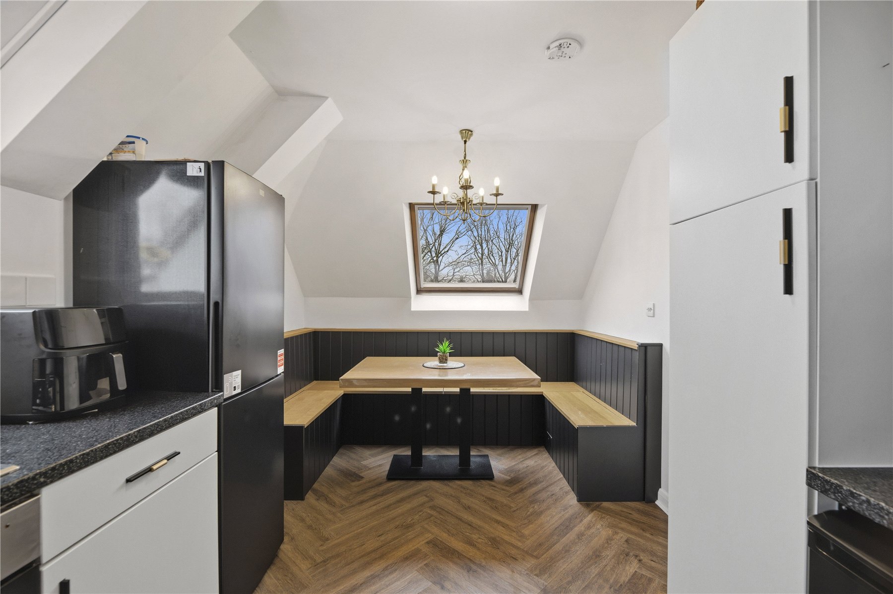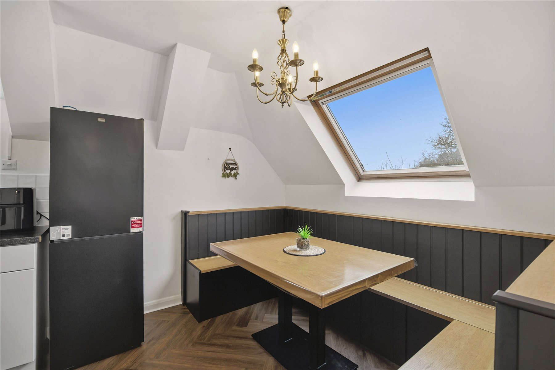 The accommodation is further enhanced by a substantial living room that flows seamlessly into the adjoining kitchen/breakfast room. Newly fitted luxury vinyl tile (LVT) flooring runs throughout the main living space, bedrooms and kitchen, providing a sleek and modern finish. The kitchen has been thoughtfully designed with a range of stylish base units, an integrated oven with gas hob and space for additional appliances. A bespoke built-in seating area adds both character and practicality, creating an inviting space for dining and entertaining.