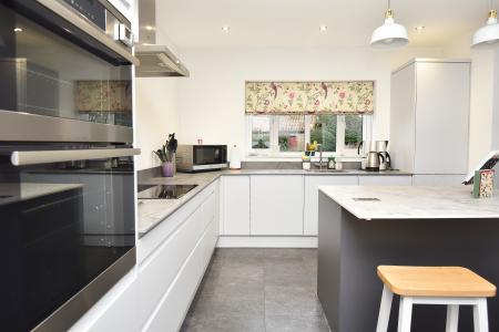 There is a dining room / sitting room again with French doors taking full advantage of the delightful private aspect of the gardens. A refitted dining kitchen comprises a contemporary range of matching base units with working surfaces and splashbacks over, appliance tower and larder unit. There is a double oven, four-ring induction hob with filter canopy over, an integrated dishwasher and free-standing fridge. A separate utility has a further range of matching wall and base units and space and plumbing for appliances.