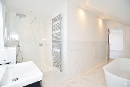There is a modern ensuite with large walk-in shower, access from the main bedroom together with a stylish family bathroom with bath and separate shower enclosure. Quality Villeroy & Boch and Hansgrohe fittings.