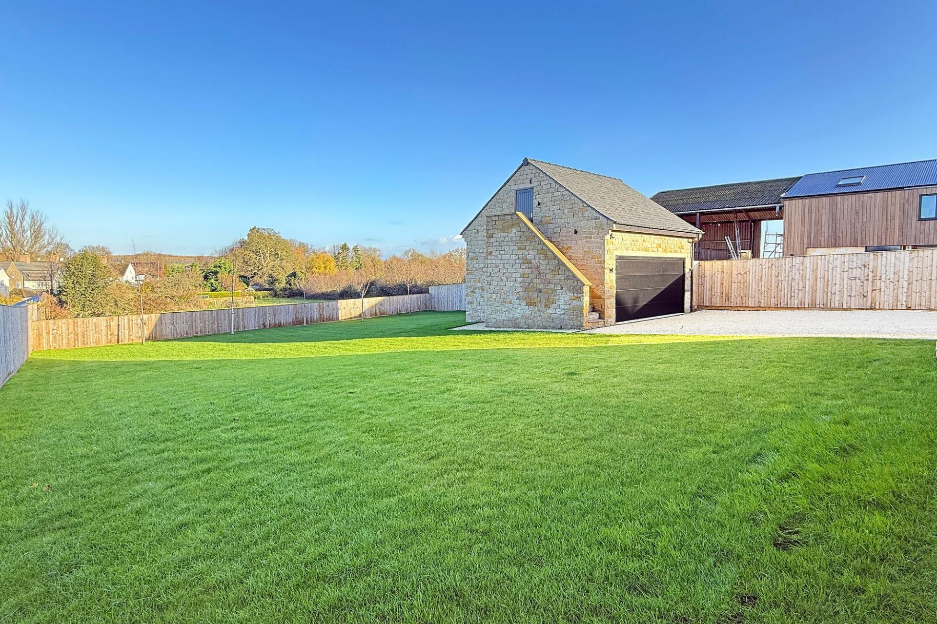 Stone-built double garage with electric doors. Garden store beneath. External steps lead to a vaulted first-floor home office with skylights but could also be used as studio, gym or games room. Electric vehicle charging point within the garage.