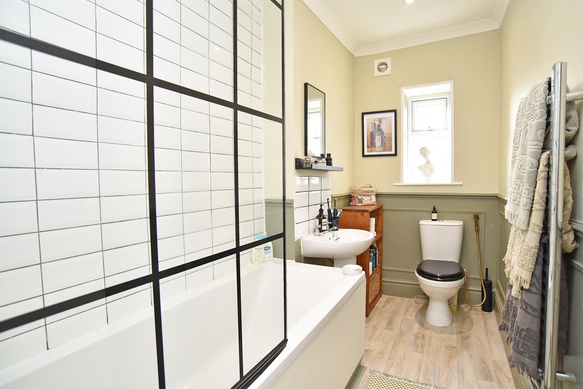 ACCOMMODATION To the first floor, there are two bedrooms and a well-appointed house bathroom featuring a shower over bath, low flush WC, and pedestal wash basin. The second floor offers a further double bedroom and access to a large additional loft space, ideal for storage or potential conversion (subject to consent).