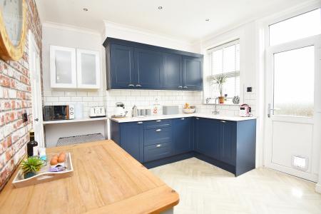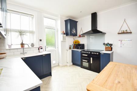 With a range of stylish fitted units with point for range cooker, integrated fridge and dishwasher. Under stairs cupboard. Door leads to the garden.