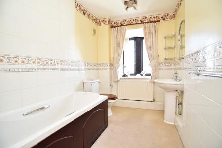 Fitted with WC, washbasin, and bath with shower over.