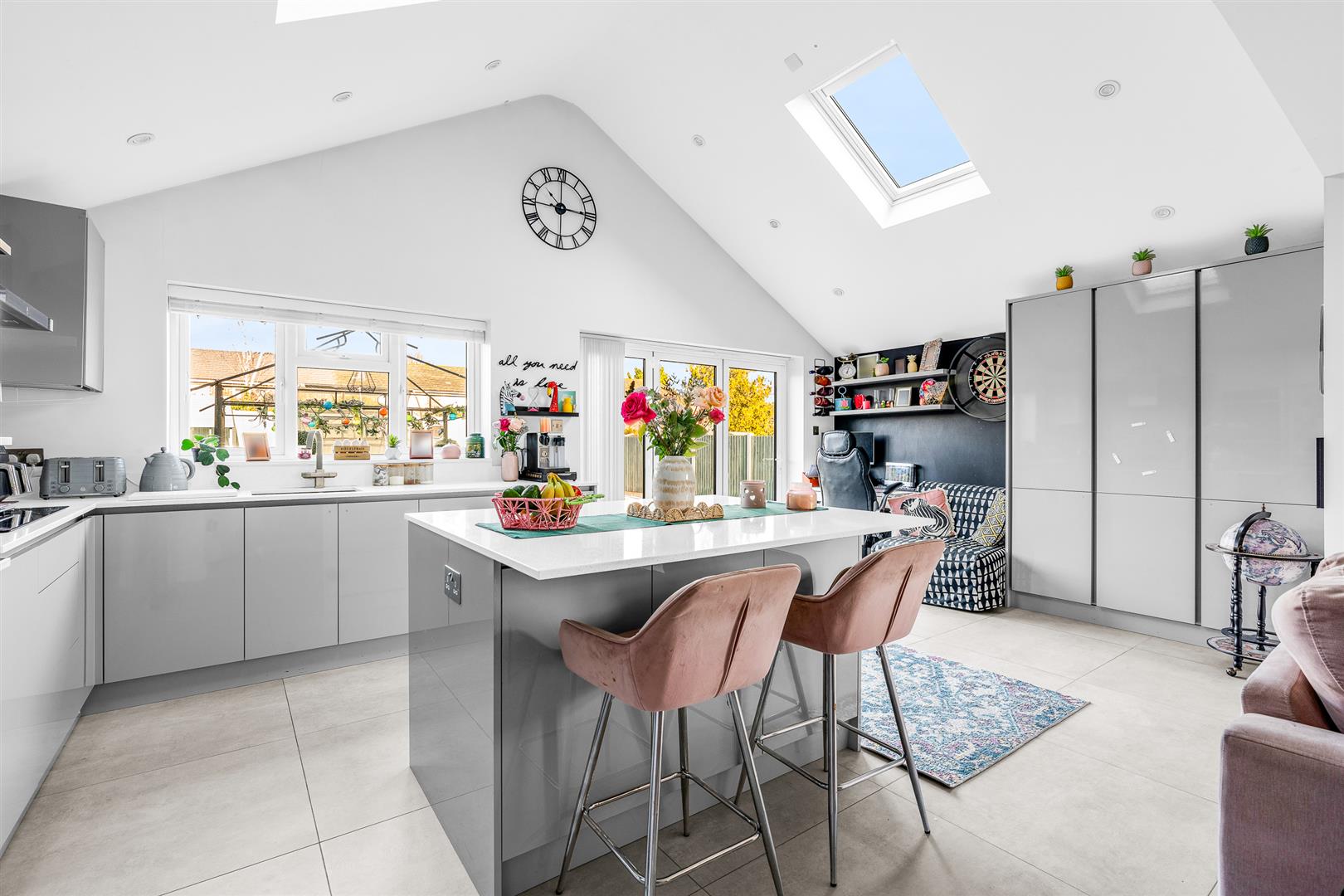 - Spacious Open Plan Kitchen/ Family Room With a Vaulted Ceiling