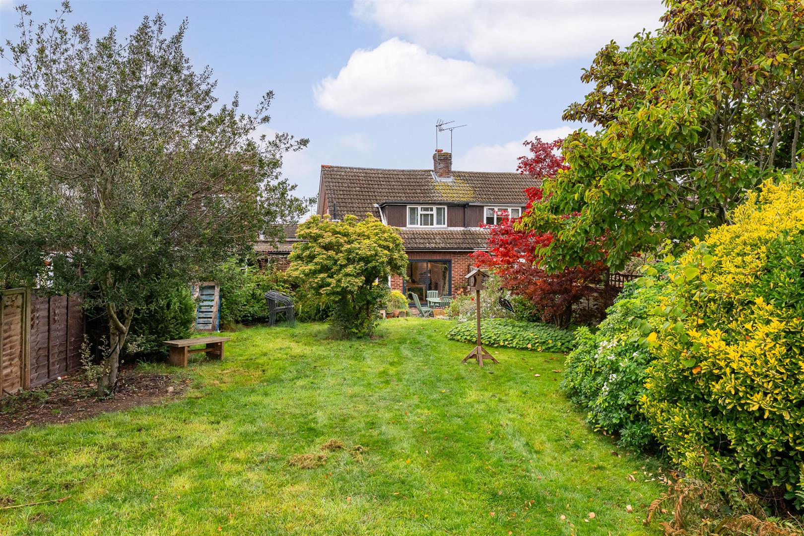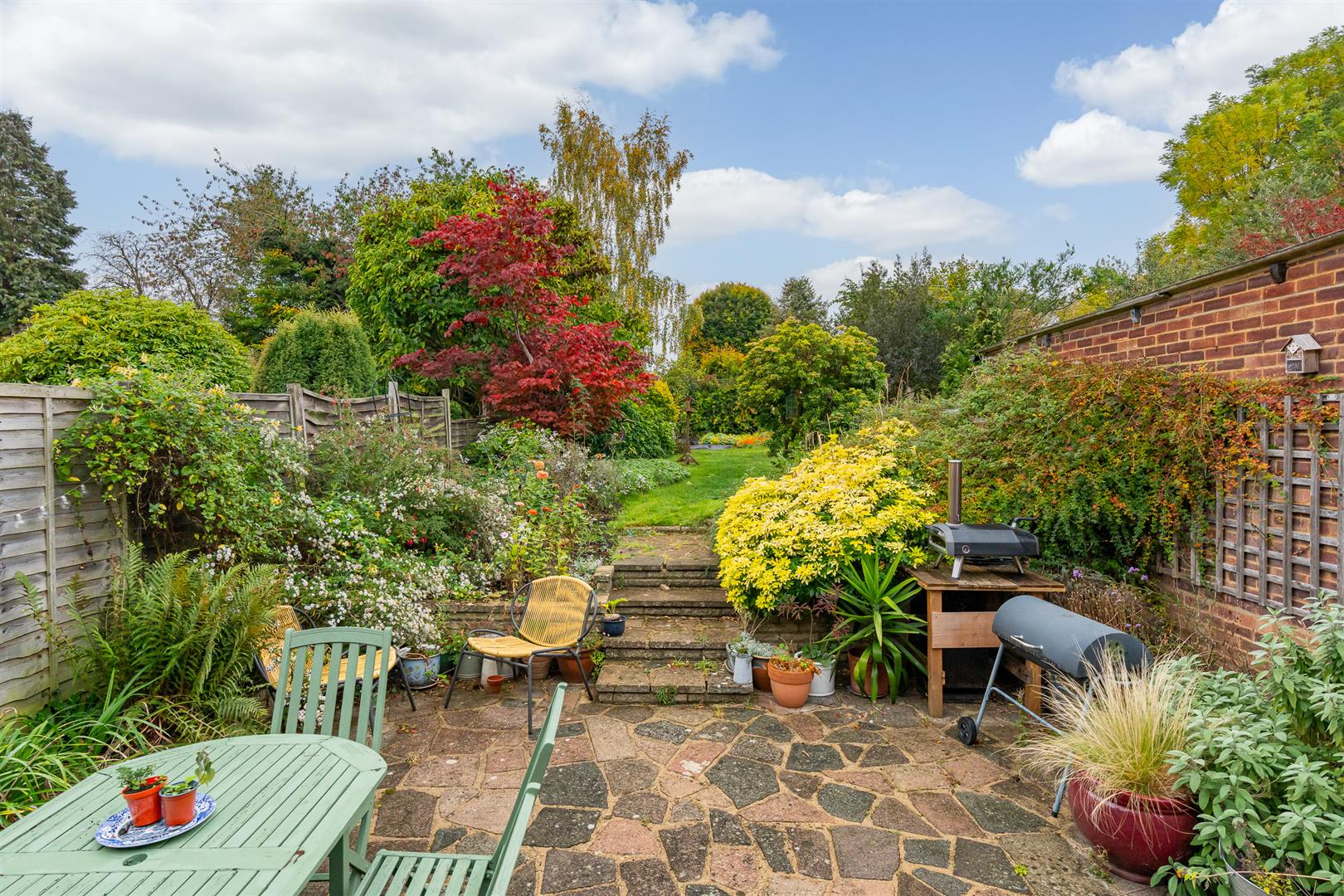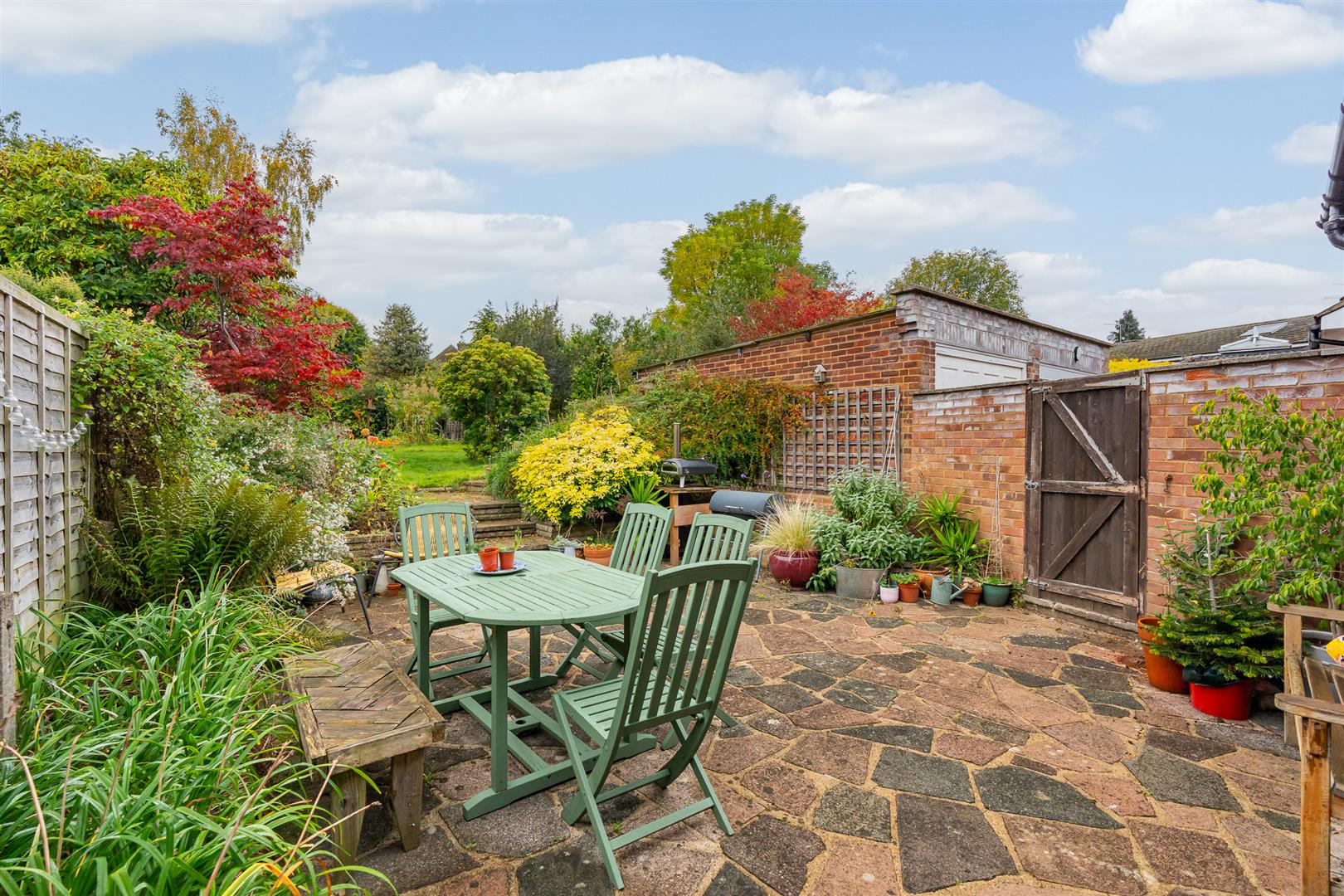 Rear Garden - Very large westerly facing garden with crazy paved patio area, steps up to large lawn, established trees, plants and shrubs., pond to rear, hedged and fenced borders.