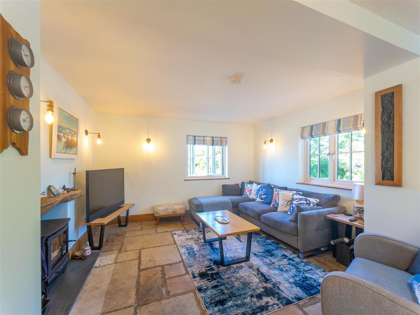 Warmed by electric underfloor heating through the flagstone flooring on the ground floor, further refinements include oak latched doors, bespoke Hammonds under stairs storage drawers with a versatile walk in cupboard and attractive recessed spotlighting.