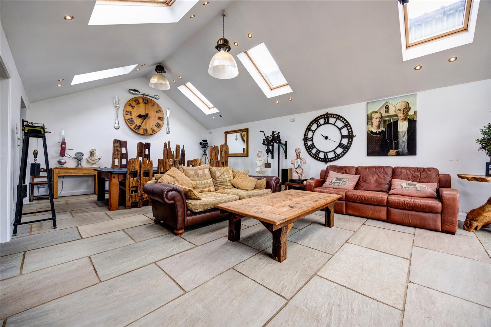 The main living accommodation offers two character-filled reception rooms. One is a light-filled summer room with apex ceilings, Velux windows, and bifold doors opening onto the patio-flooding the space with natural light and adding a real 'wow' factor.