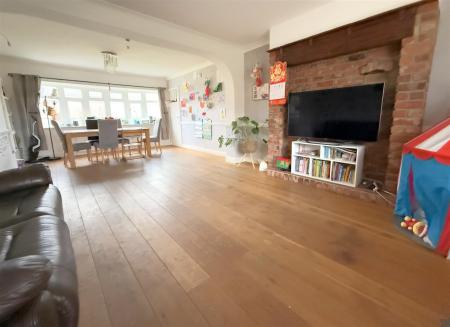 Sitting / Dining Room - 7.85m x 4.29m max (25'9 x 14'1 max) - A particularly well proportioned reception benefitting from a dual aspect with the main feature being an attractive exposed brick chimney breast with quarry tiled hearth and inset open grate, alcoves to either side, oak strip wood flooring, two central heating radiators, coved ceiling with two light points, additional wall light points, a door returning to the initial entrance hall and from the dining area a further door gives access through into: