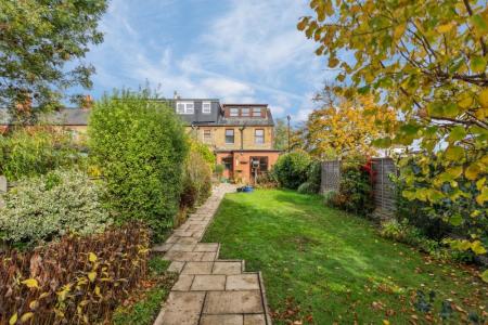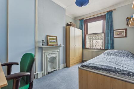 To the first floor, there are three generously sized double bedrooms, with one featuring a period fireplace and ample room for freestanding furniture. Bedroom two further benefits from fitted wardrobes, and a well-appointed three-piece family bathroom completes this level. The second floor features a tastefully converted loft, measuring an impressive 23'5 x 13'7, providing a wonderful master suite with eaves storage and an en-suite shower room.