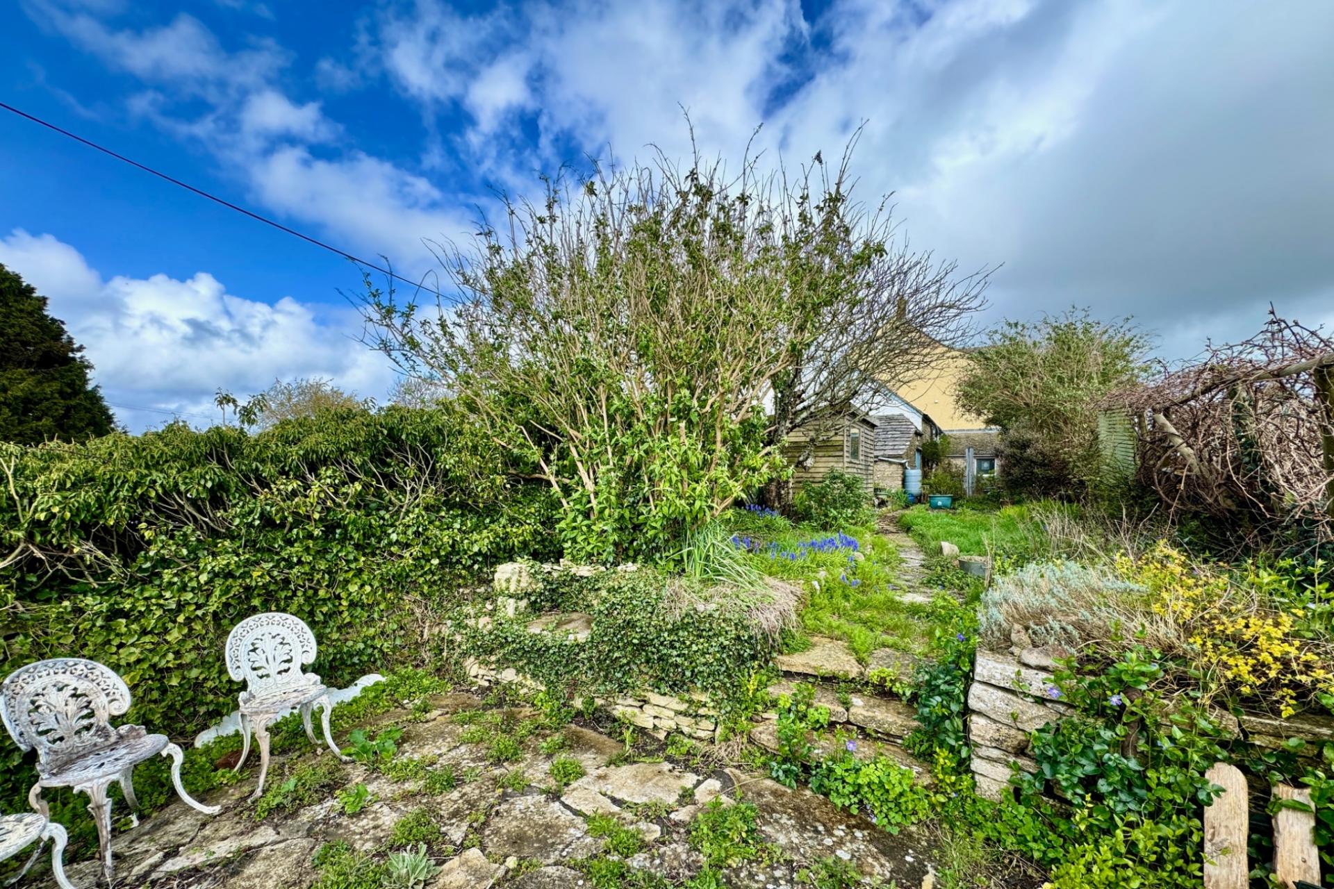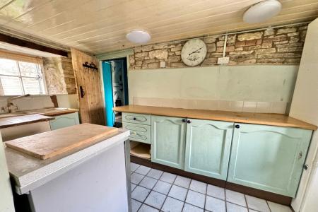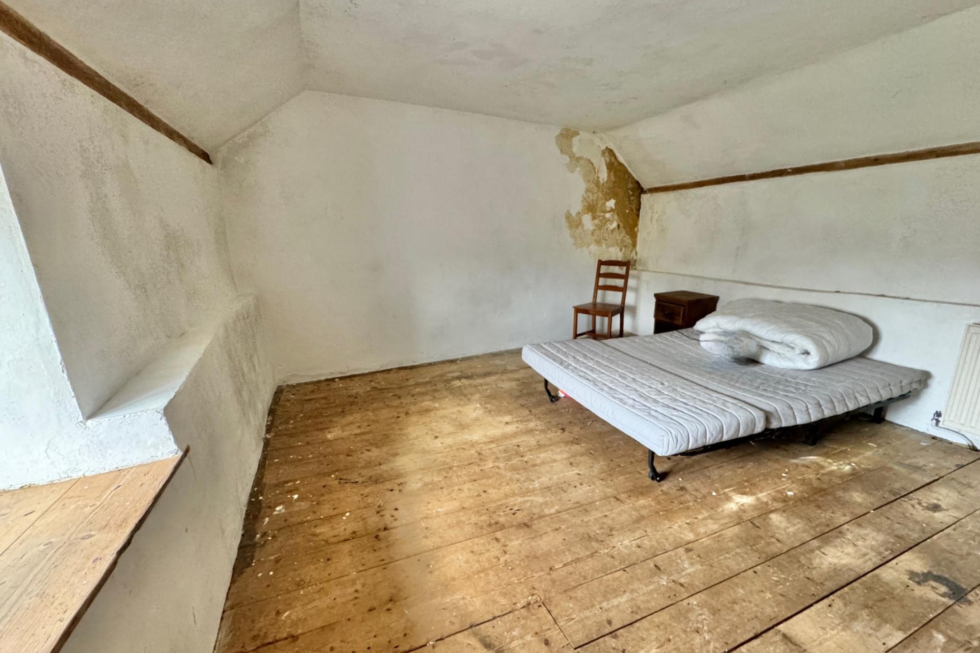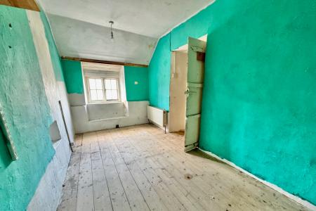 The entrance leads directly to the large open-plan living/dining room with flagstone flooring. The living area has an open fireplace and the dining area has exposed stone walls and a door to the rear garden. The kitchen is in need of replacement but has a pleasant dual aspect. The single bedroom with en-suite shower room completes the ground floor accommodation.