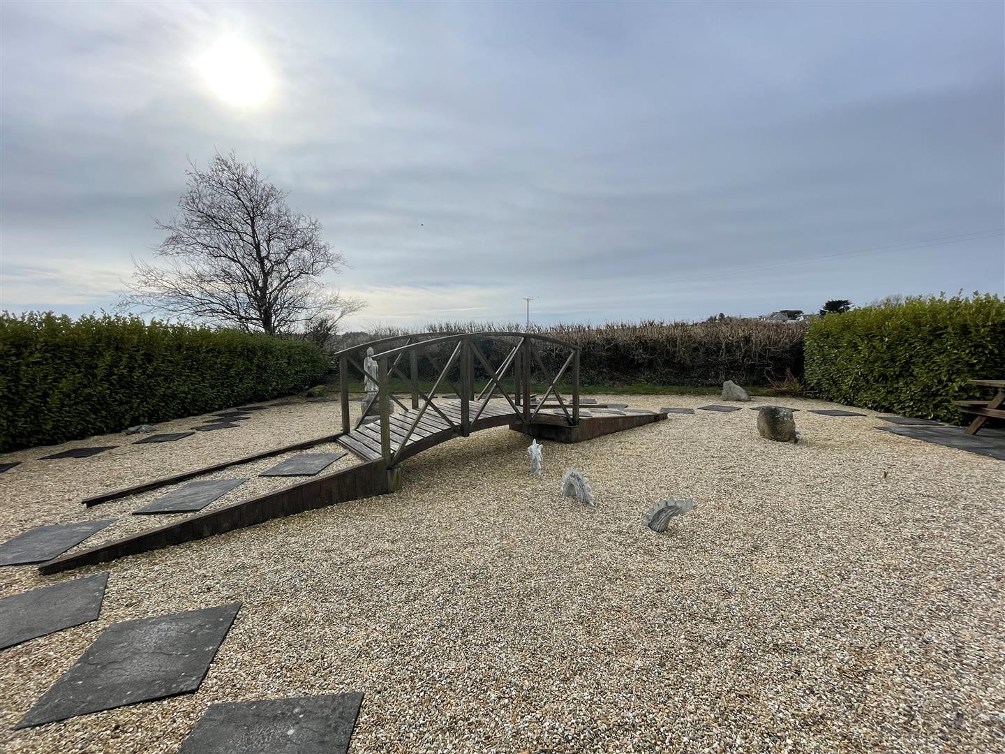 The Outside - The property benefits from a large tarmac driveway at the front with ample parking for several vehicles. The property is surrounded by beautiful, well kept gardens mainly laid to lawn and hedging. Additionally, there is a gravelled garden with a bridge and stepping stones - a haven of tranquility!