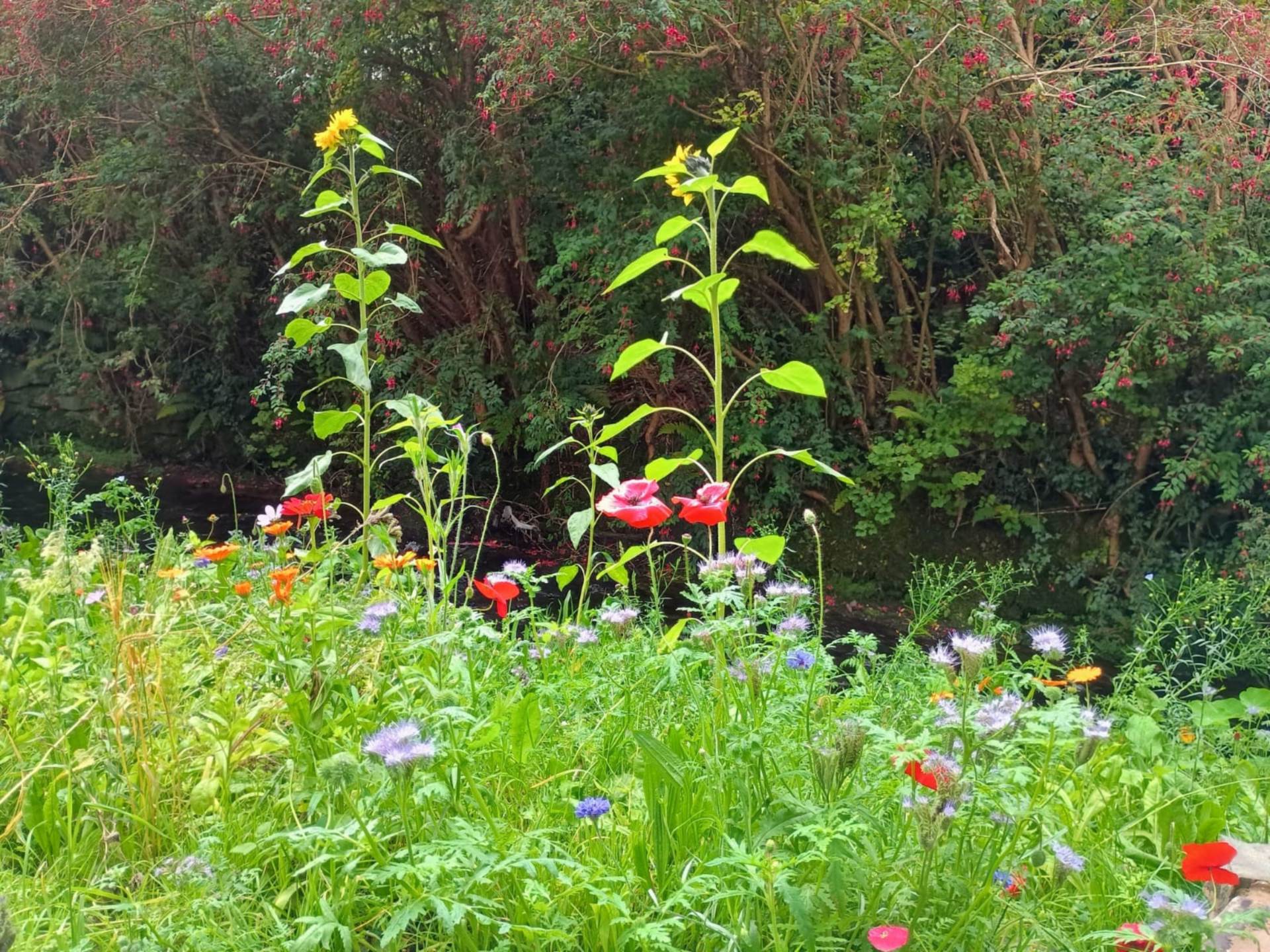 - mature shrubs. Wildflower`s along the riverbank. Stone stores and single garage