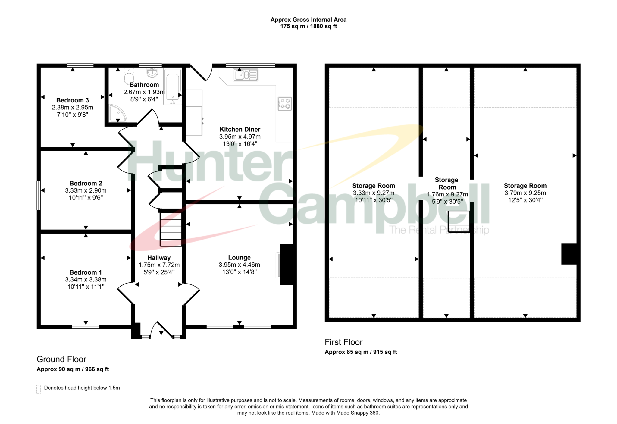 - Three bedrooms