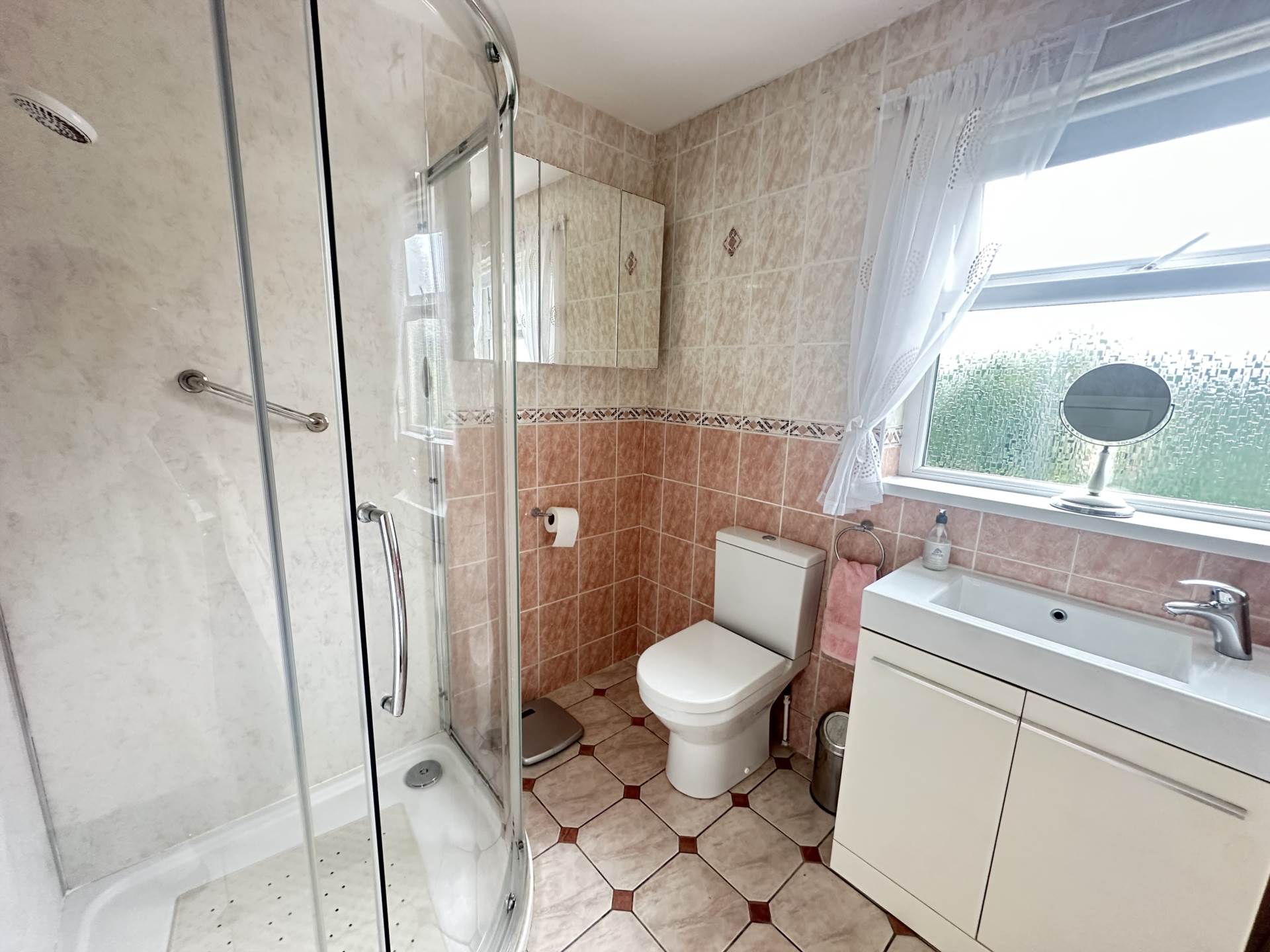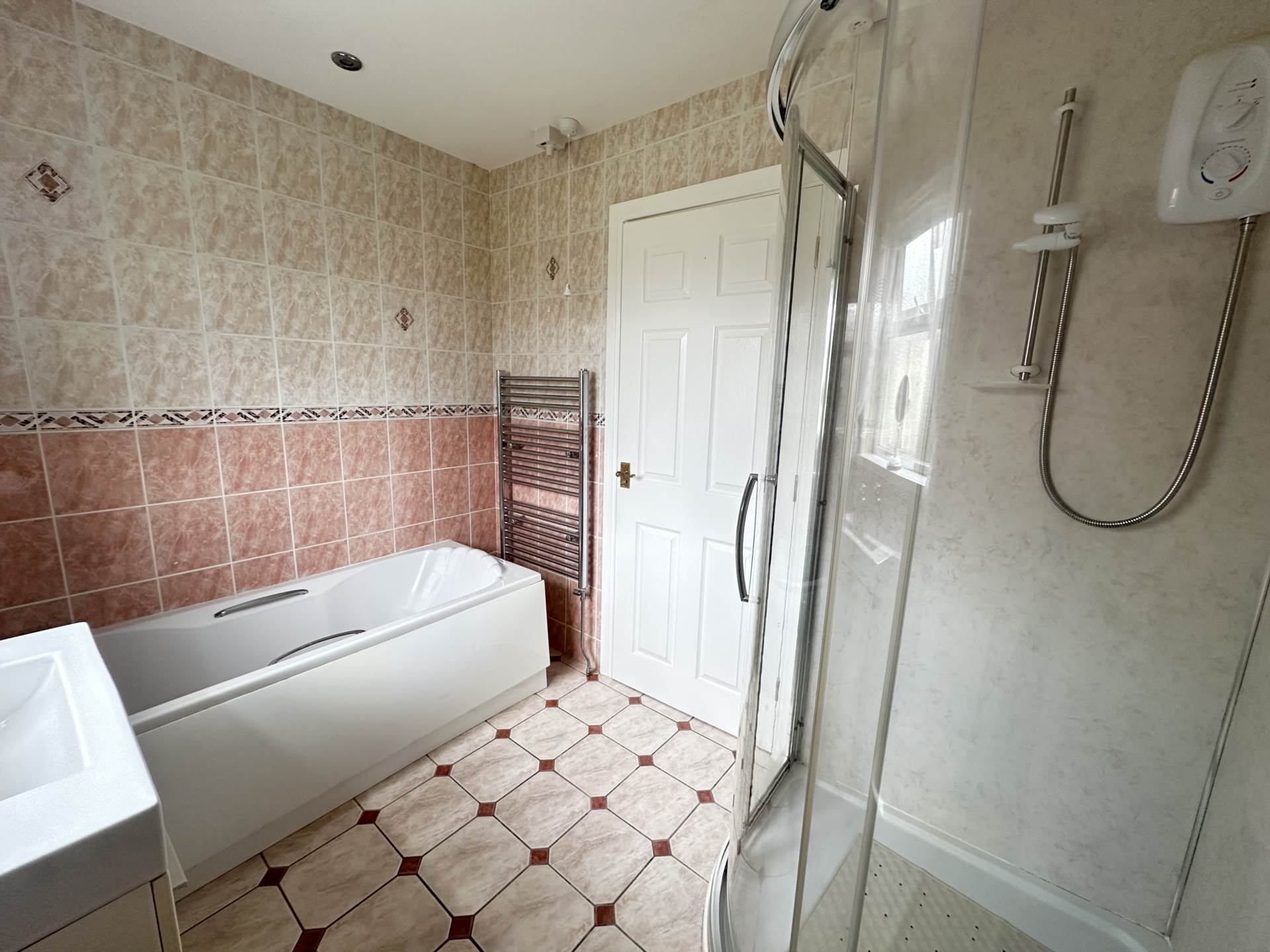 - White bathroom suite with separate shower cubicle