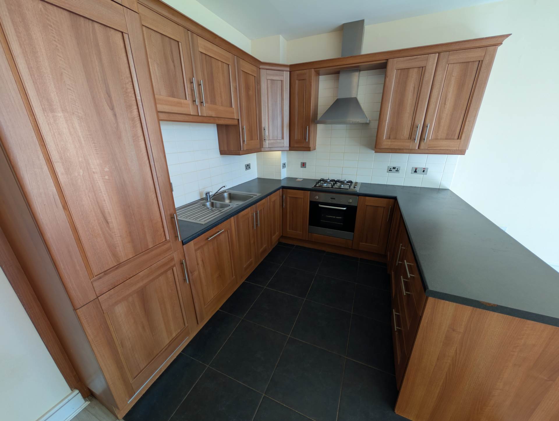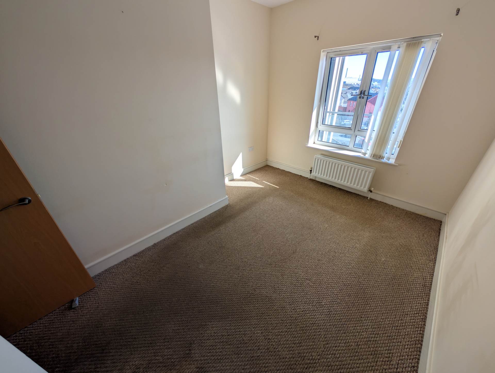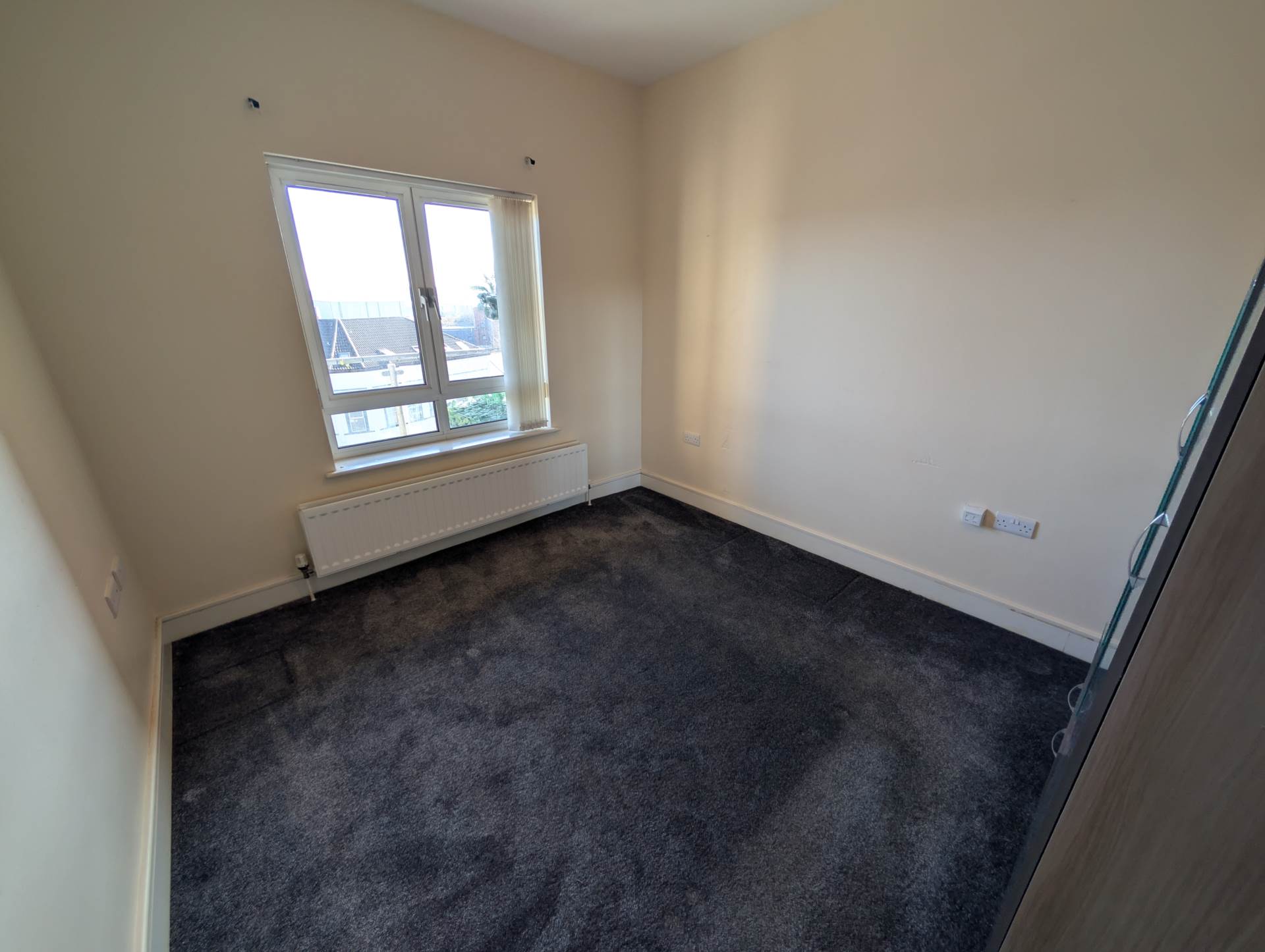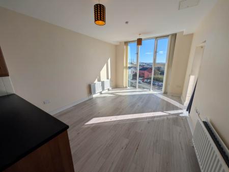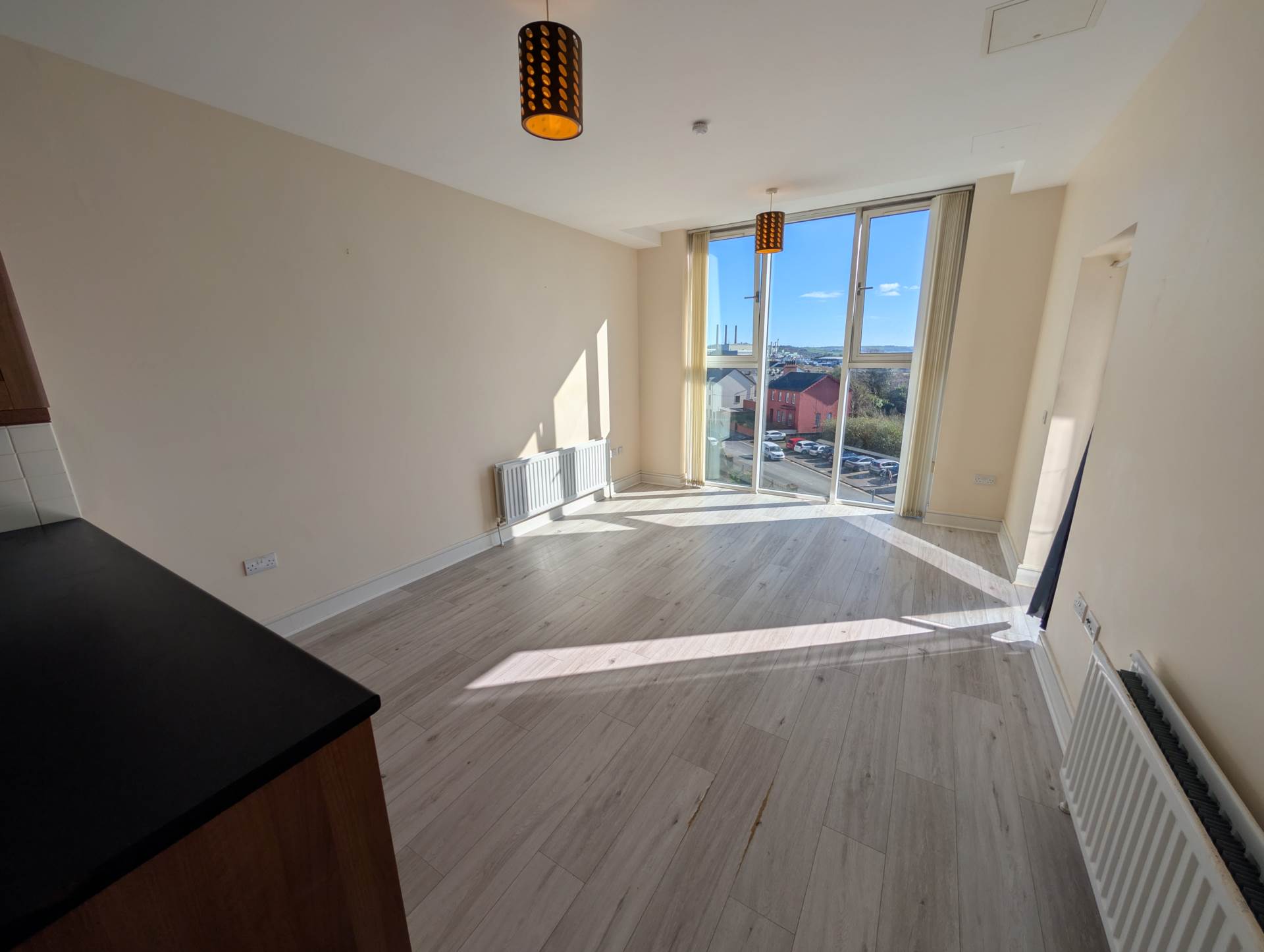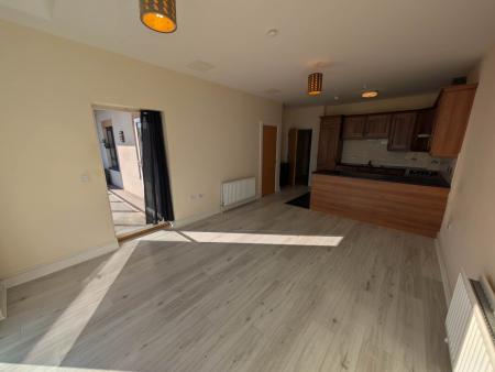 - Bright open plan lounge/kitchen with integrated appliances and large floor to ceiling window
