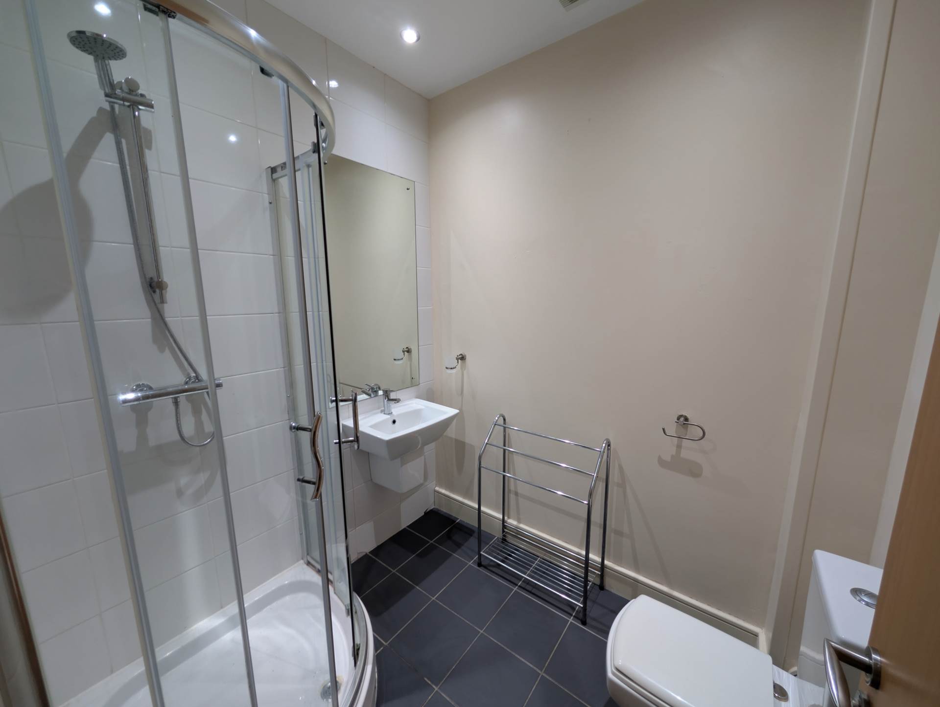 - Modern fully tiled bathroom