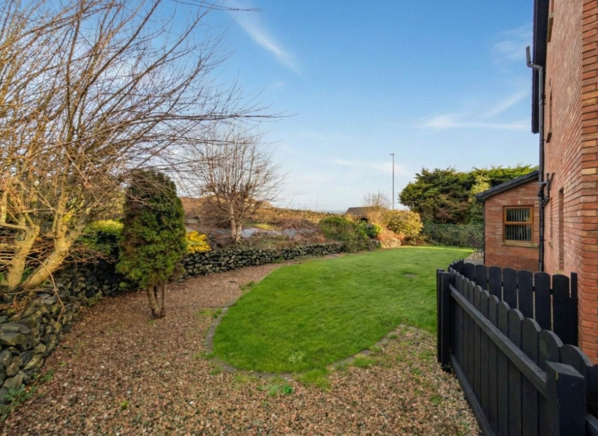 - Safely enclosed gardens bounded by stone walls and mature trees