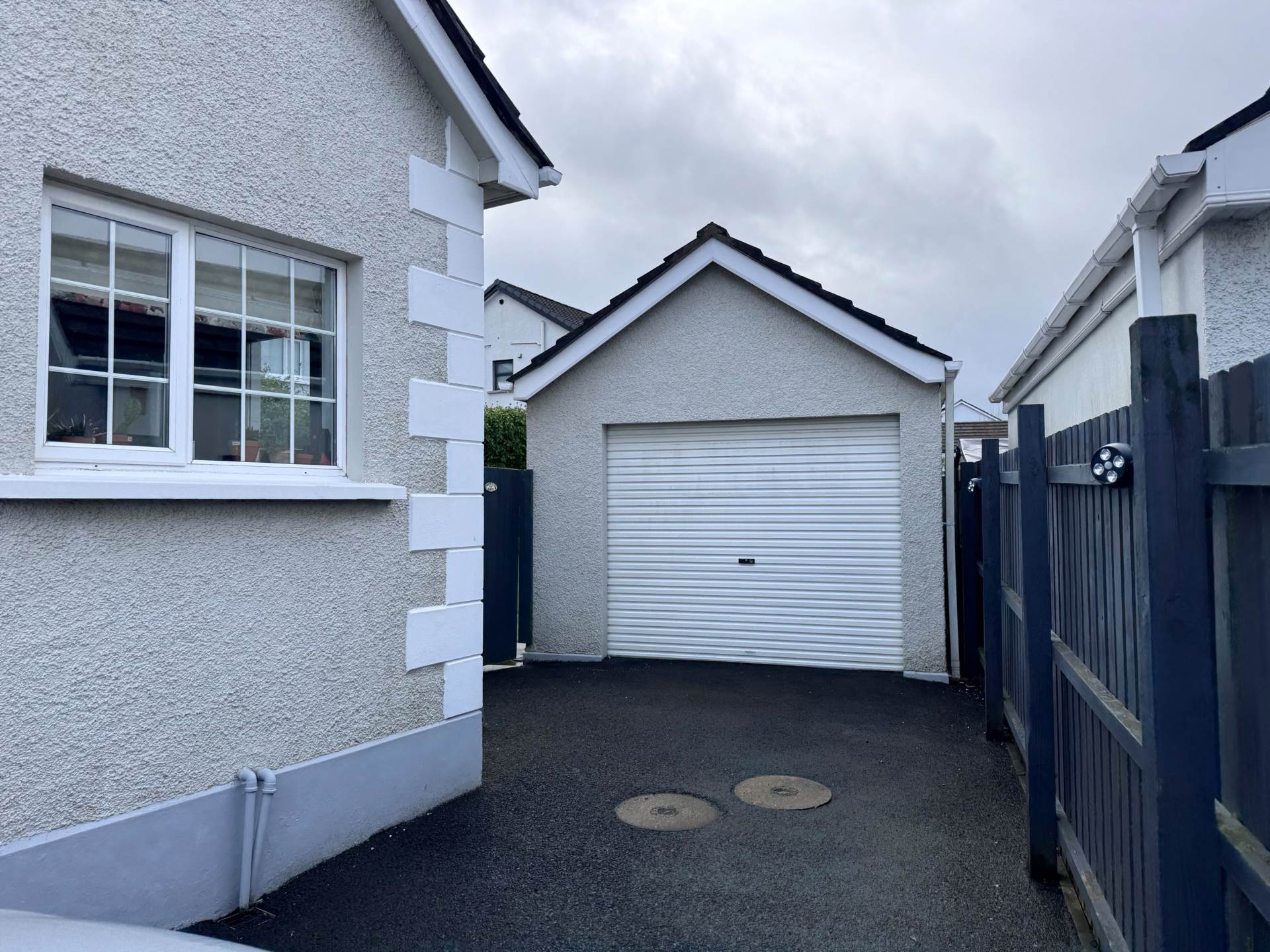 - Front garden in lawn with tarmac driveway to side