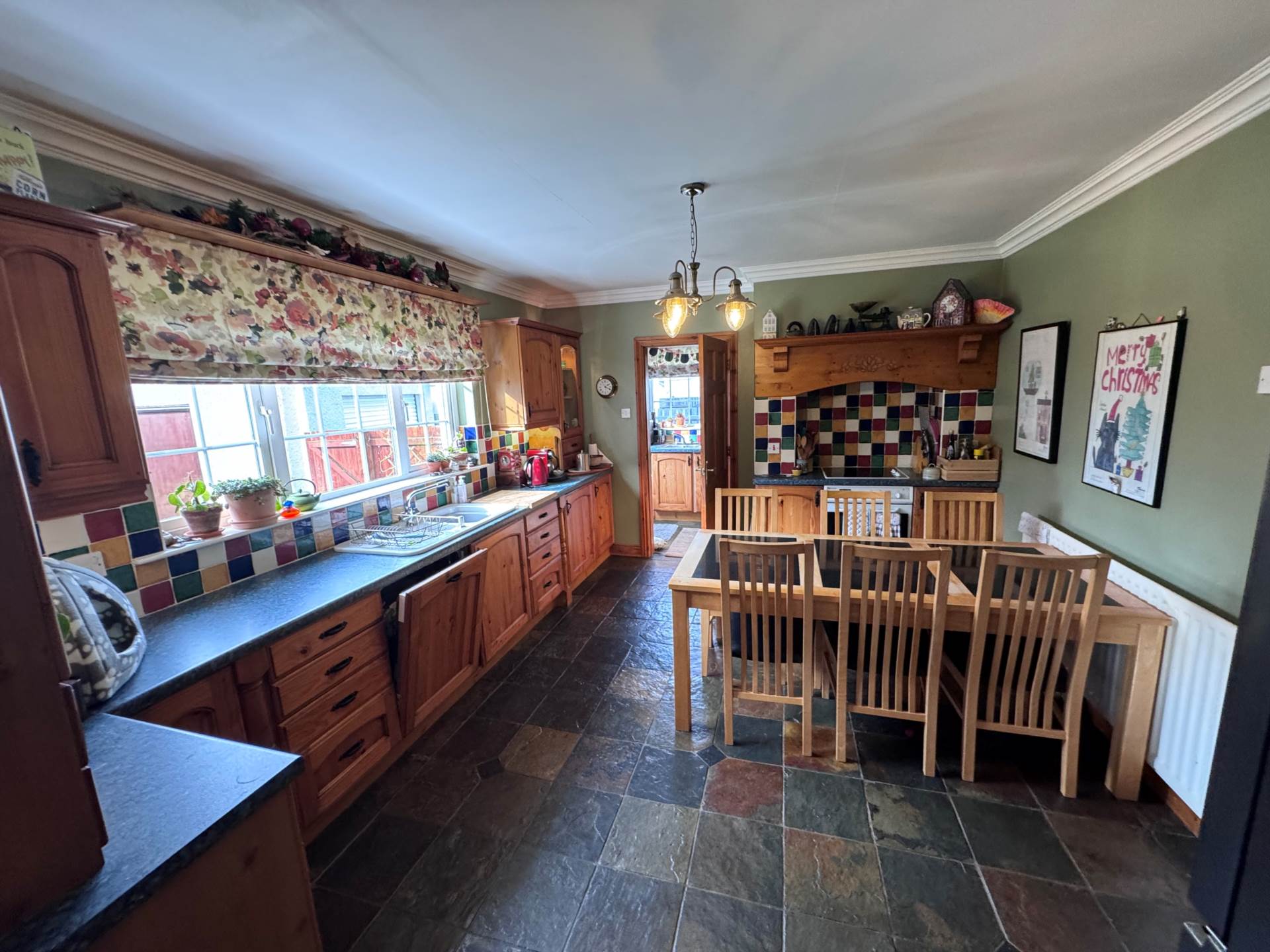 - Kitchen/Dining with Family room off and patio doors leading to garden