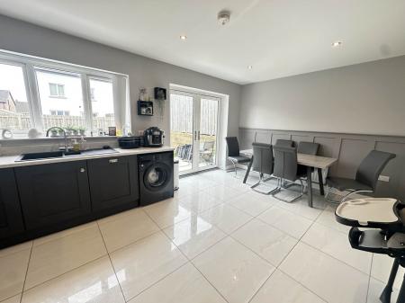 - Contemporary kitchen/dining room with range of appliances and utility room off
